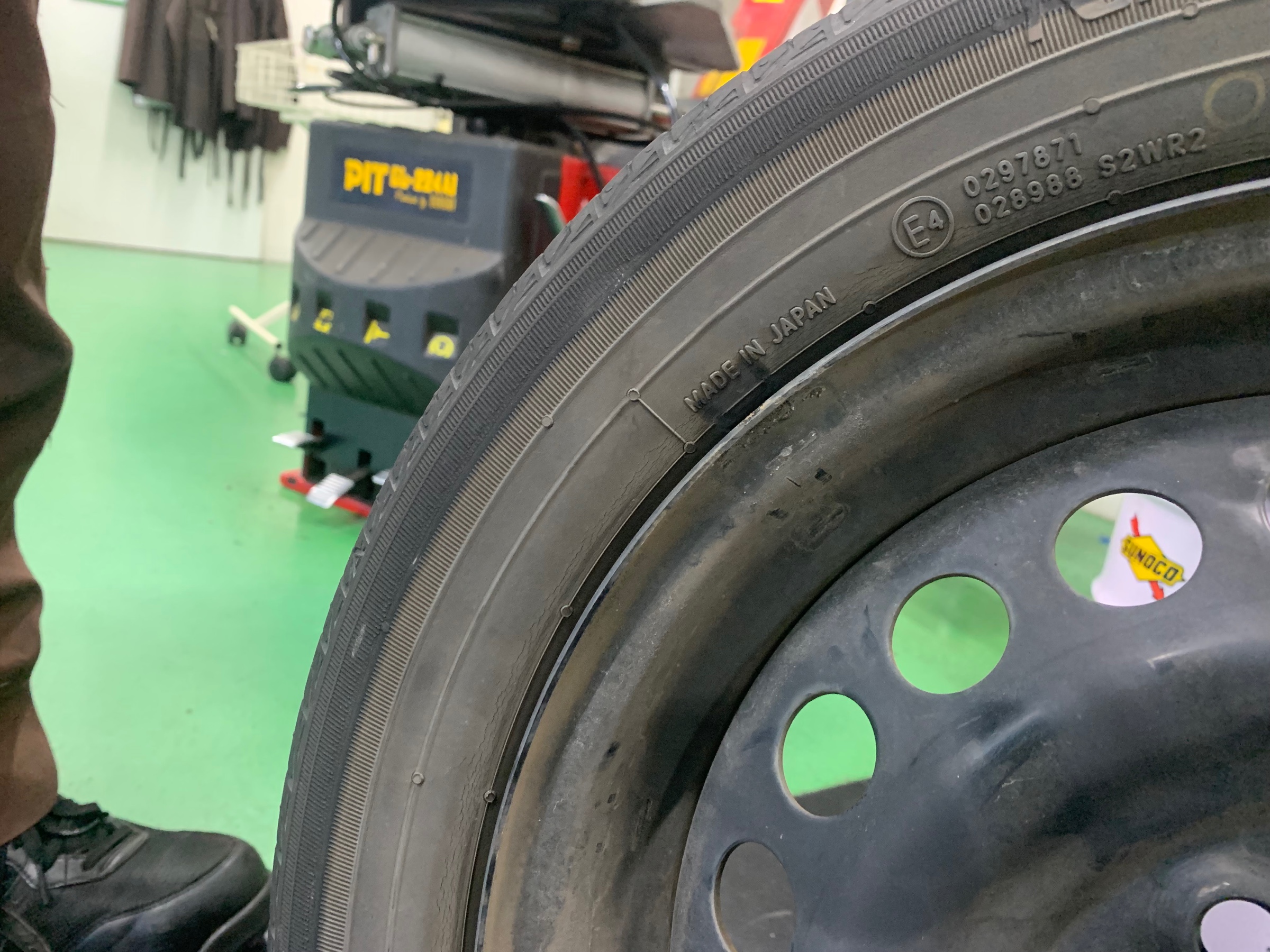 修理剤付着のため、タイヤ一本交換。