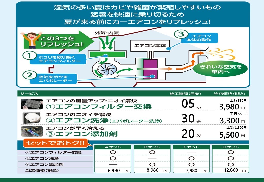 エアコンのメンテナンスで車内を快適に!!
