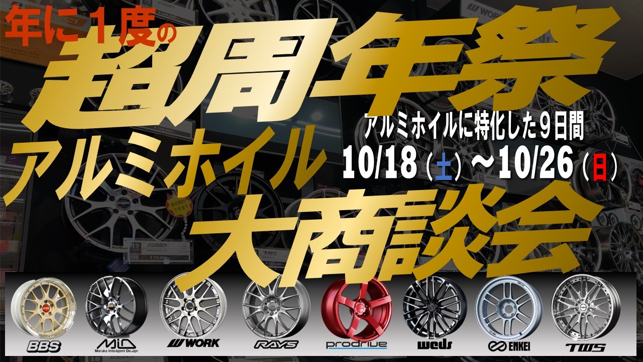 【10月18日~26日開催】タイヤ館長岡京 超周年祭|アルミホイール大量展示&大商談会