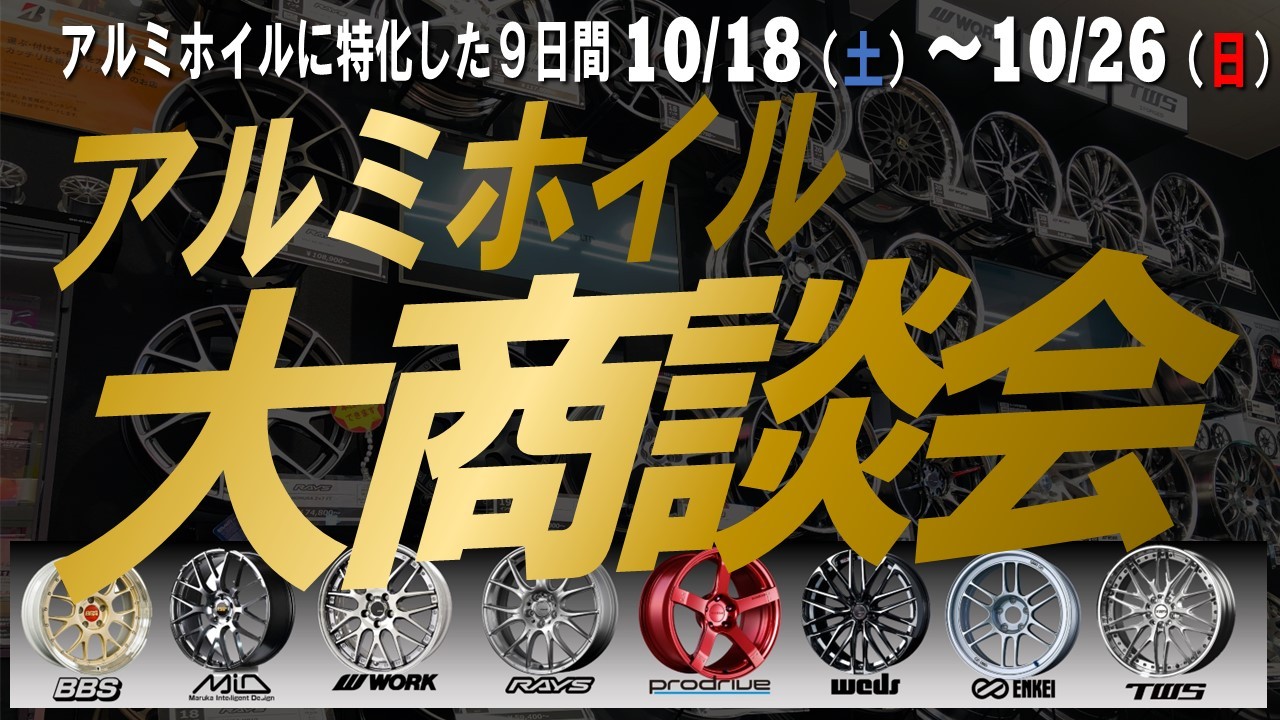 期間は2025年10月18日(土)から10月26日(日)までの9日間。人気ブランドのアルミホイールを多数展示し、特別価格での大商談会を実施します。