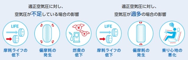 タイヤの空気圧補充・点検をしないとどんなことが起こる?