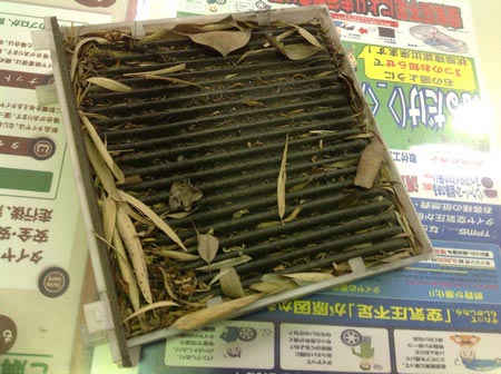 先日点検させていただいたお車のエアコンフィルター…葉っぱとかホコリが沢山詰まっていました><