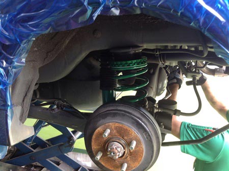 このお車もショックとスプリングがへたってきたので車高調に交換です。