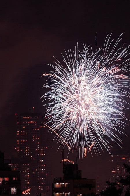 一番近くで見る花火はすごくキレイなんですが周りは全員オトコなのです・・・。