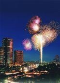 川の上で見る花火は、綺麗でした。