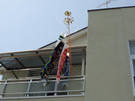 ご近所さんのも子供が男の子の家は、鯉のぼりがベランダで