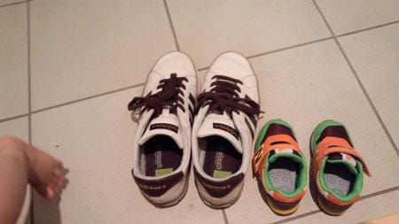 今までは、立つのがやっとだったので、やわらかめの靴を履かせてましたが、