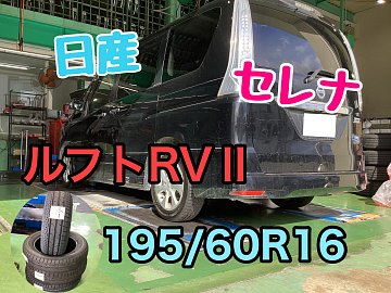 いつもタイヤ館長岡京HPご覧いただきありがとうございます(^^♪ 本日ご紹介させて頂く作業は、日産 セレナ タイヤ交換!!です。 タイヤ:ルフトRVⅡ サイズ:195/60R16 ミニバンの特徴として 「車重が他車種に比べて重い」 「車高・重心が高い」 「コーナリングやブレーキング時に部分的に強く力がか...