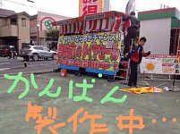 道路から目立つようにこんな看板を作ってみました!! スタッフと比べてみると一目瞭然!? 私よりも遥かに大きいので作るのに一苦労でした… 向日市方面から当店に来られる方はぜひ目印にしてくださ〜い\(^o^)/