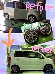 ワゴンRのイメージチェンジです(^O^)/ タイヤ、ホイール、ナビ、足回りなどなど… かっこよく変身です(*^^*) ホイールはシルバーっぽいけどよく見るとちょっと黒みがかかった感じでオシャレです☆ ビフォー、アフターで見るとイメージが全然違いますね(^O^)/