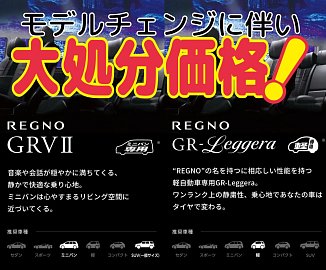 いつもタイヤ館長岡京HPご覧いただきありがとうございます(^^♪ レグノの新商品発売に伴い、ディスコン商品をアウトレット商品として大!大!大放出!!!もうアウトレットセールは始まってます☆在庫分だけのスペシャル価格です!!暖かくなるのを待ってたら遅いですよ~~!! 夏タイヤ購入を考えてら...