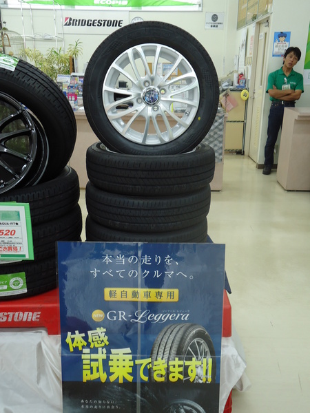 軽自動車専用タイヤ GR-Leggera 体感試乗できちゃいます! ポスト 今回発売した「REGNO GR-Leggera」14インチサイズ限定!! 当店にて、お客様のお車で現車タイヤホイールと脱着交換にて GR-Leggeraを、ご自分のお車で体感試乗することかできます。 サイズは、155/65R14 対応車種に限ります。 詳しくは、スタッフまでお気軽にお問合せください。 ぜひ!この機会に「REGNO」の素晴らしさを、ご体感ください・・・! カテゴリ:商品情報 タイヤ関連