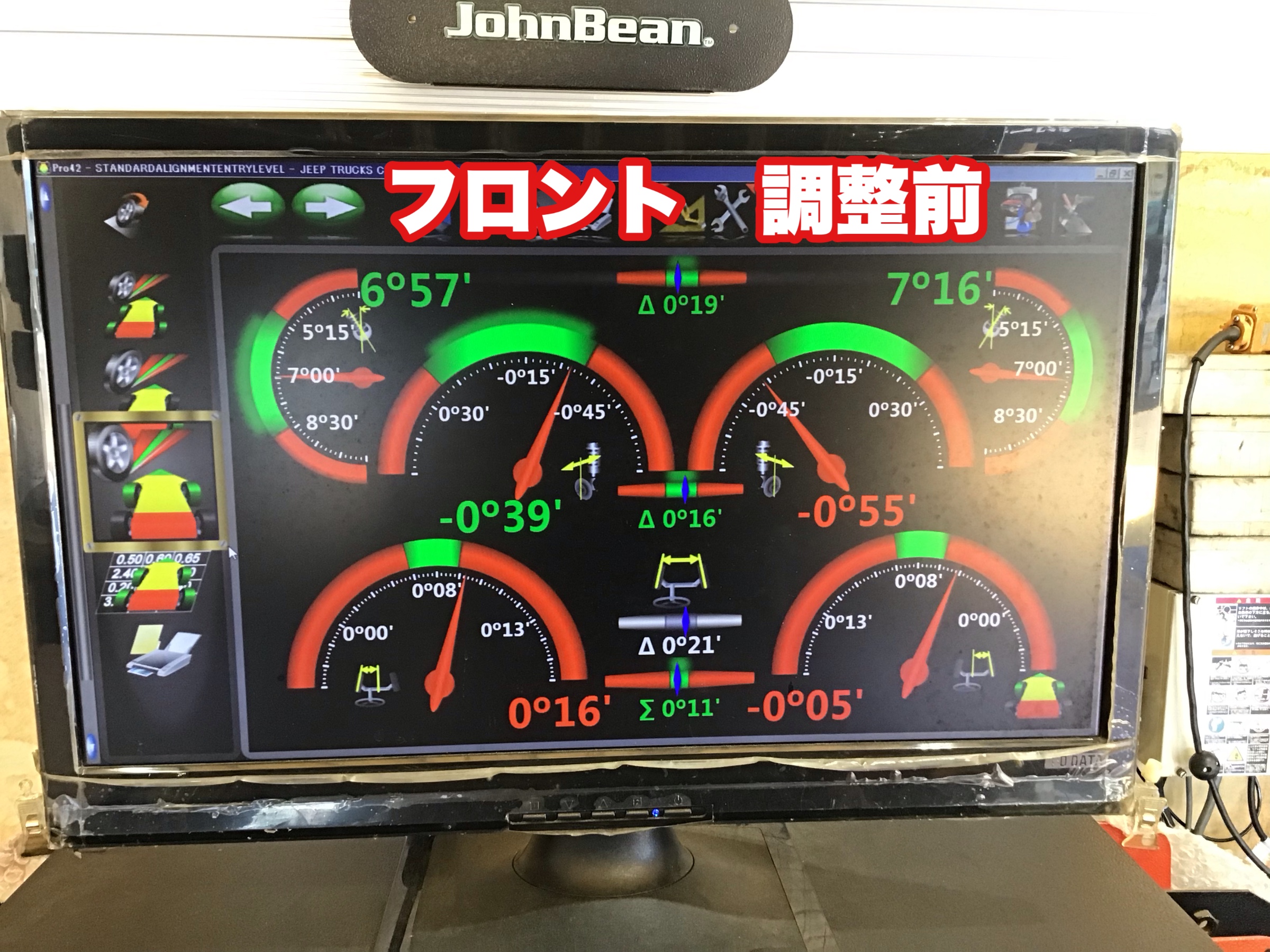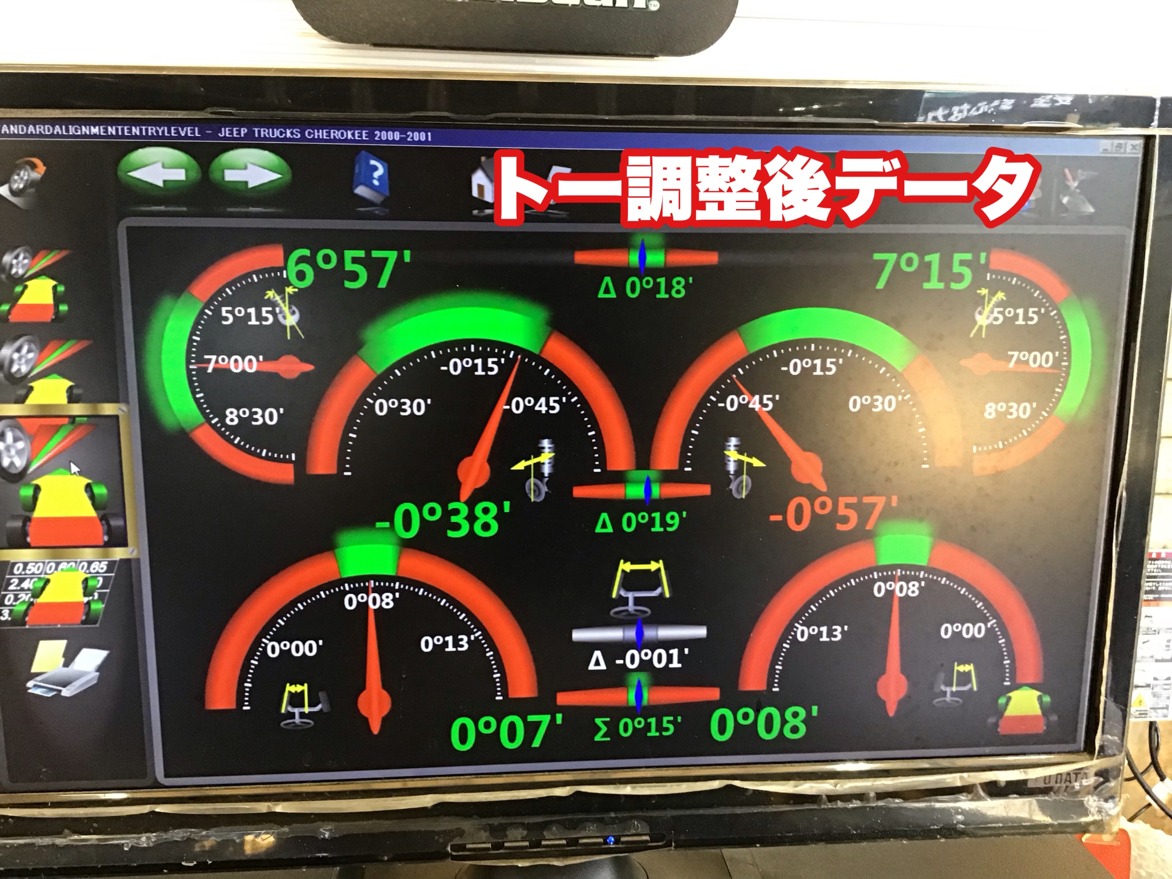 本日は、ジープ チェロキーのアライメント調整の紹介デス。とても…シブいチェロキーですが、フラフラするという事でアライメントのご依頼です。