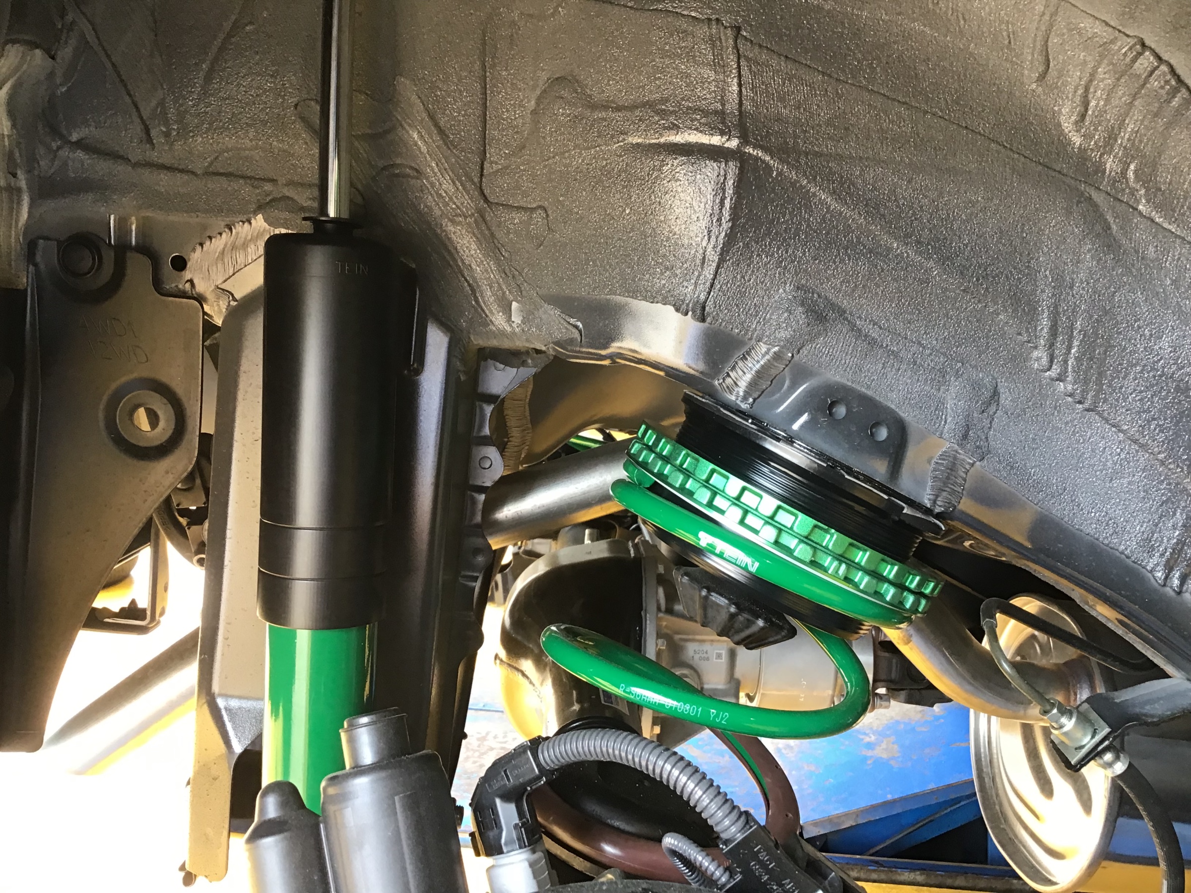 納車されて間もないのでピカピカですが、TEINのFLEX Zに交換していきますよ〜