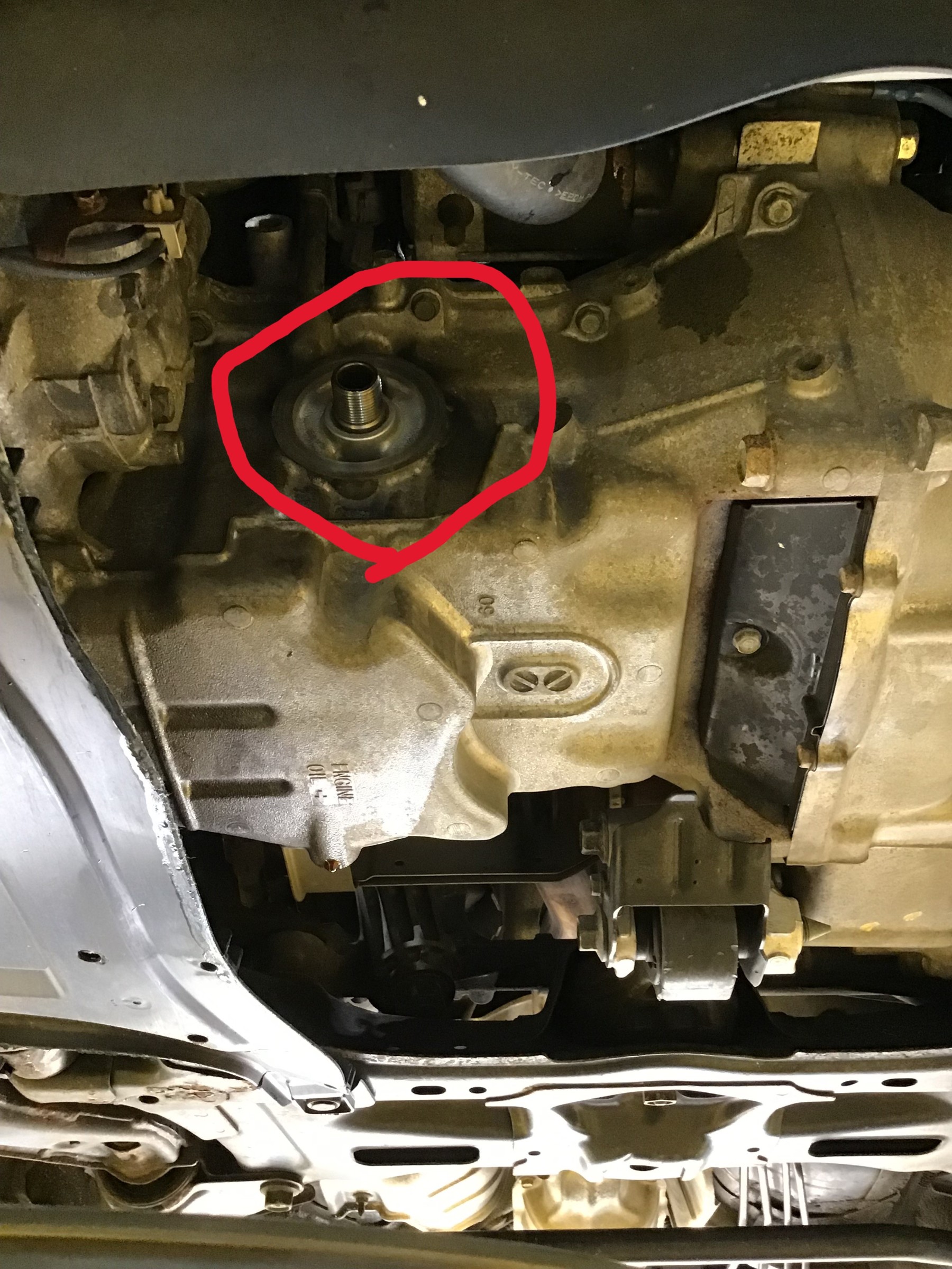 画像赤丸のオイルエレメント取付箇所にサンドイッチタイプのセンサーアタッチメントを取付けます。