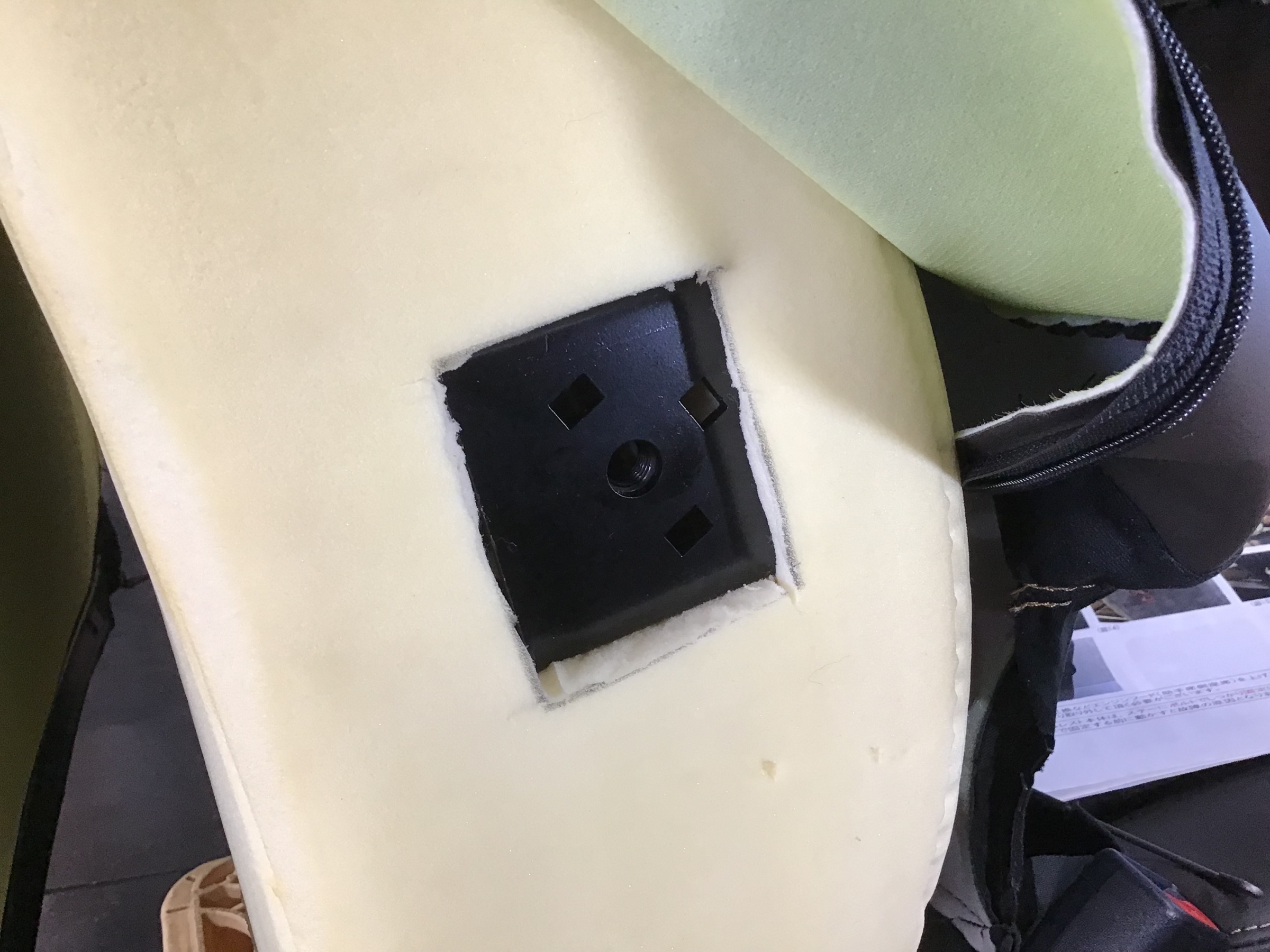 ウレタンがキレイにカットできたら、シート表皮を元に戻してアームレストを取付して