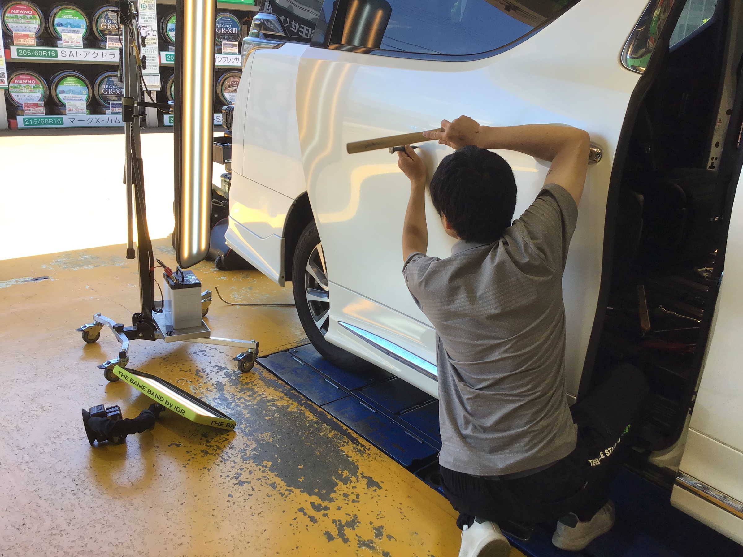 しなくても大丈夫! キレイに凹みを直す事が出来ます。修理風景
