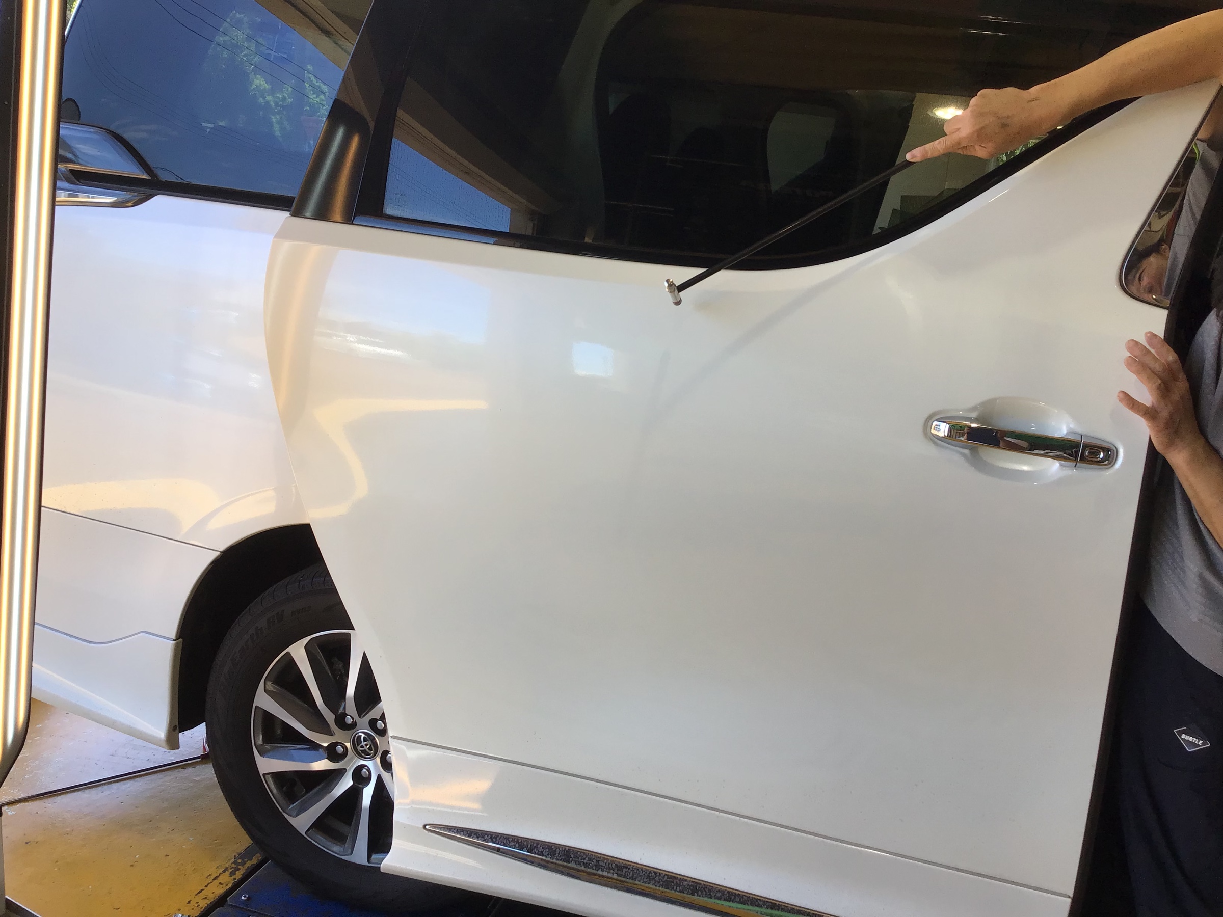 今回の修理の車種は トヨタ ヴェルファイアの右スライドドアの修理依頼です。