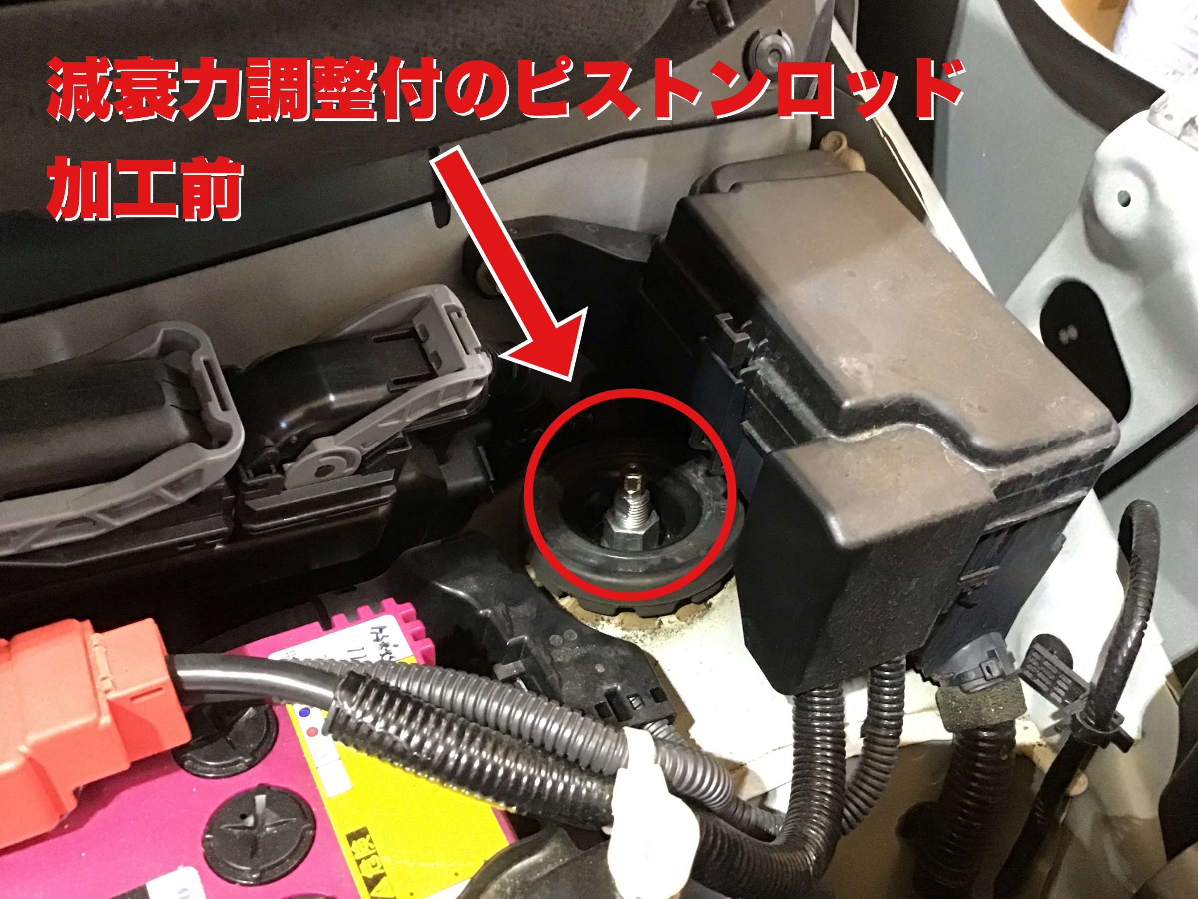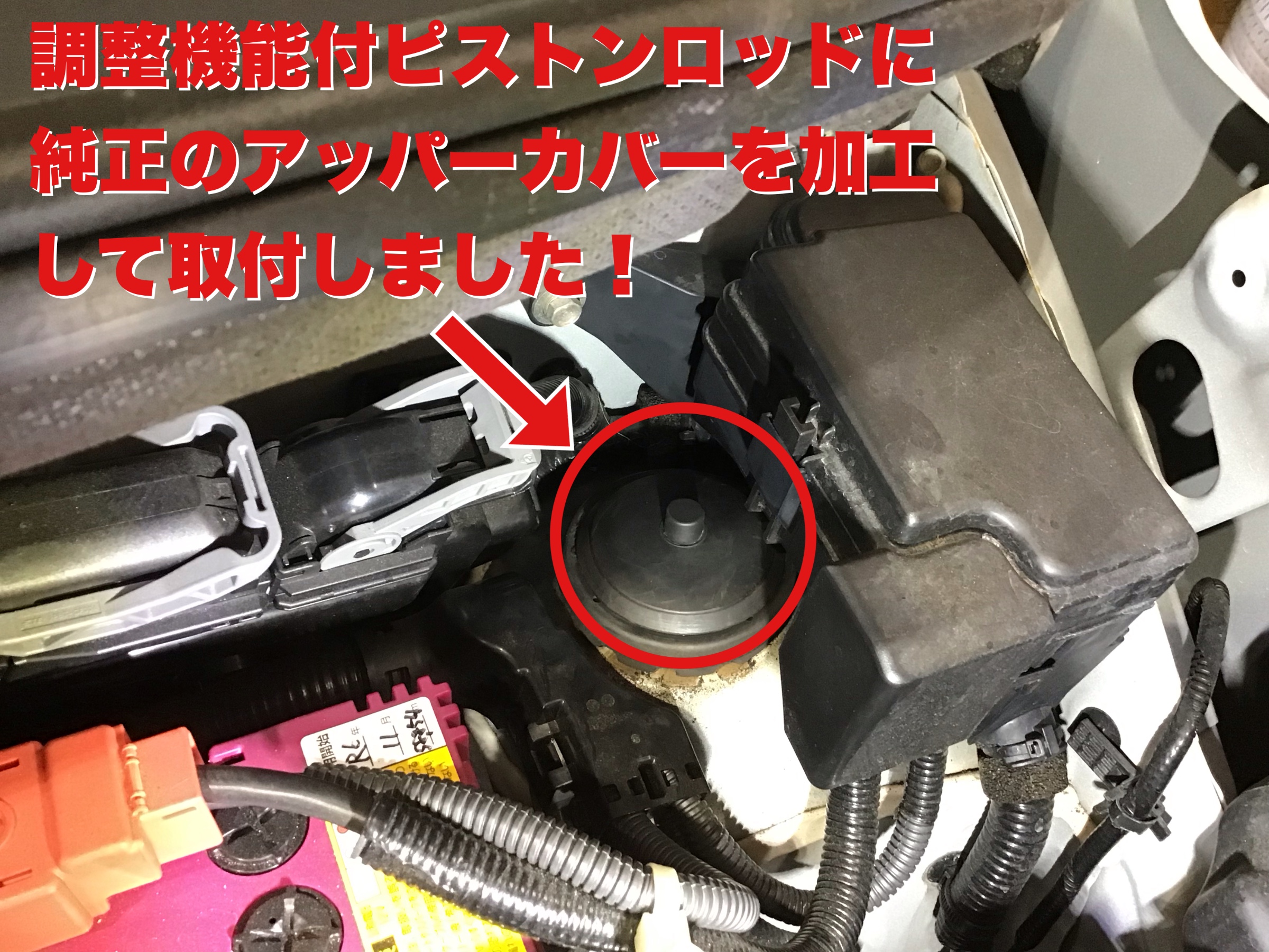 取付は極力純正風に見えるように調整機構のロッド部分の加工をいたしました。↑↑ 加工前のフロントのアッパー部分