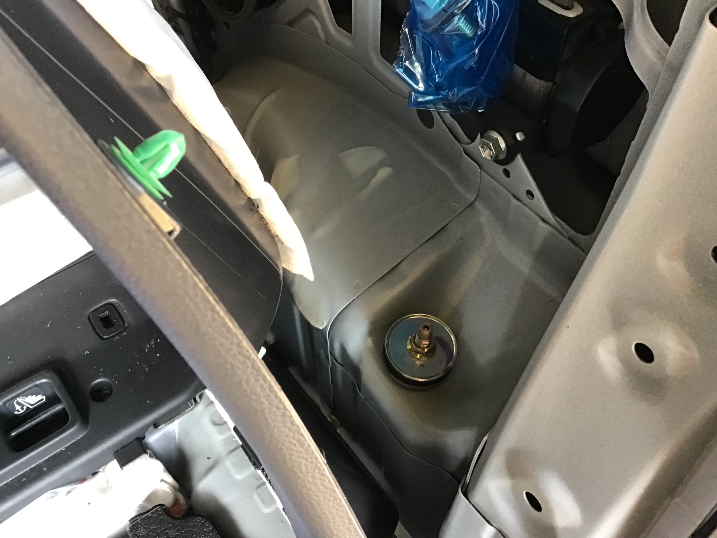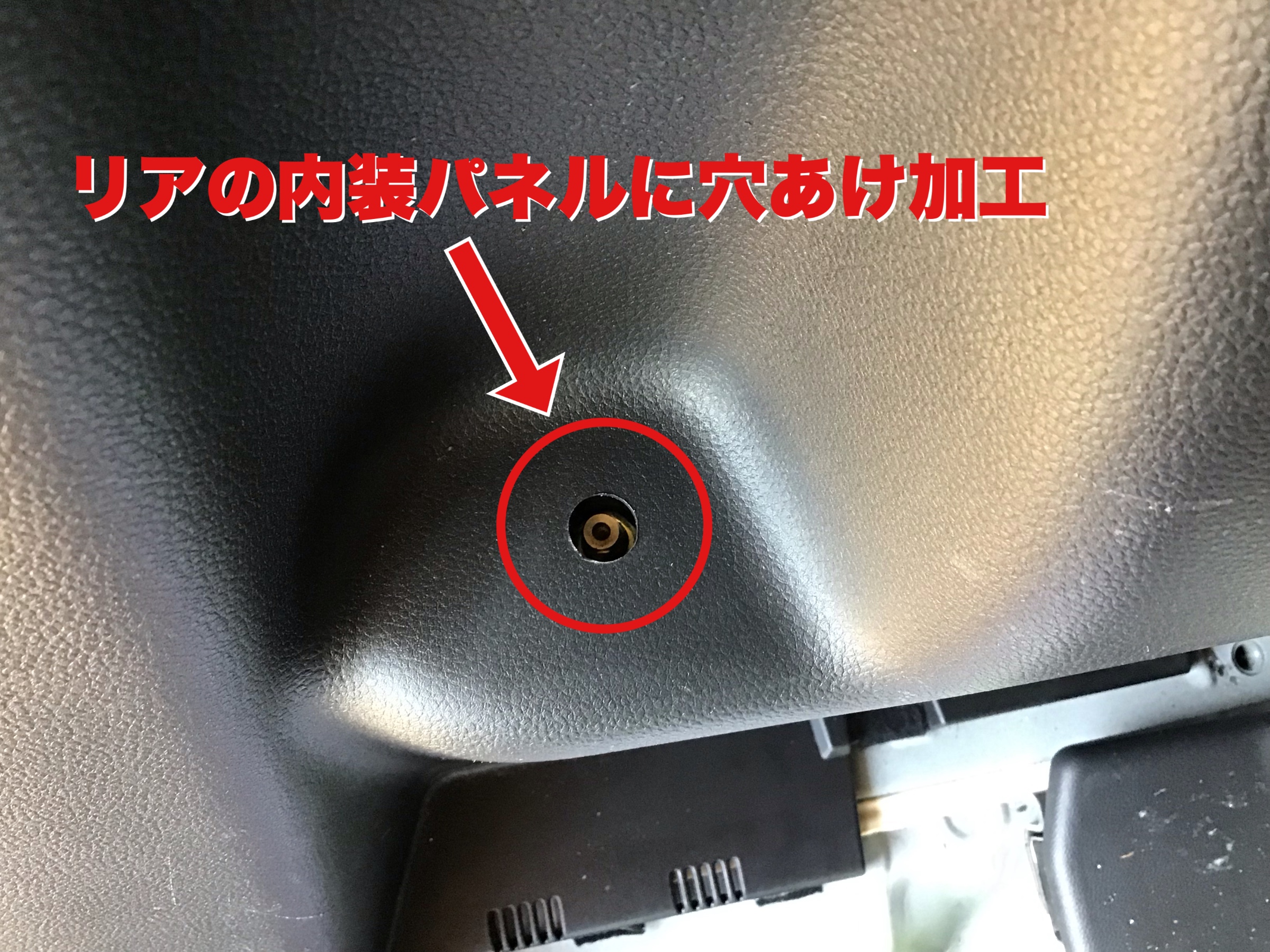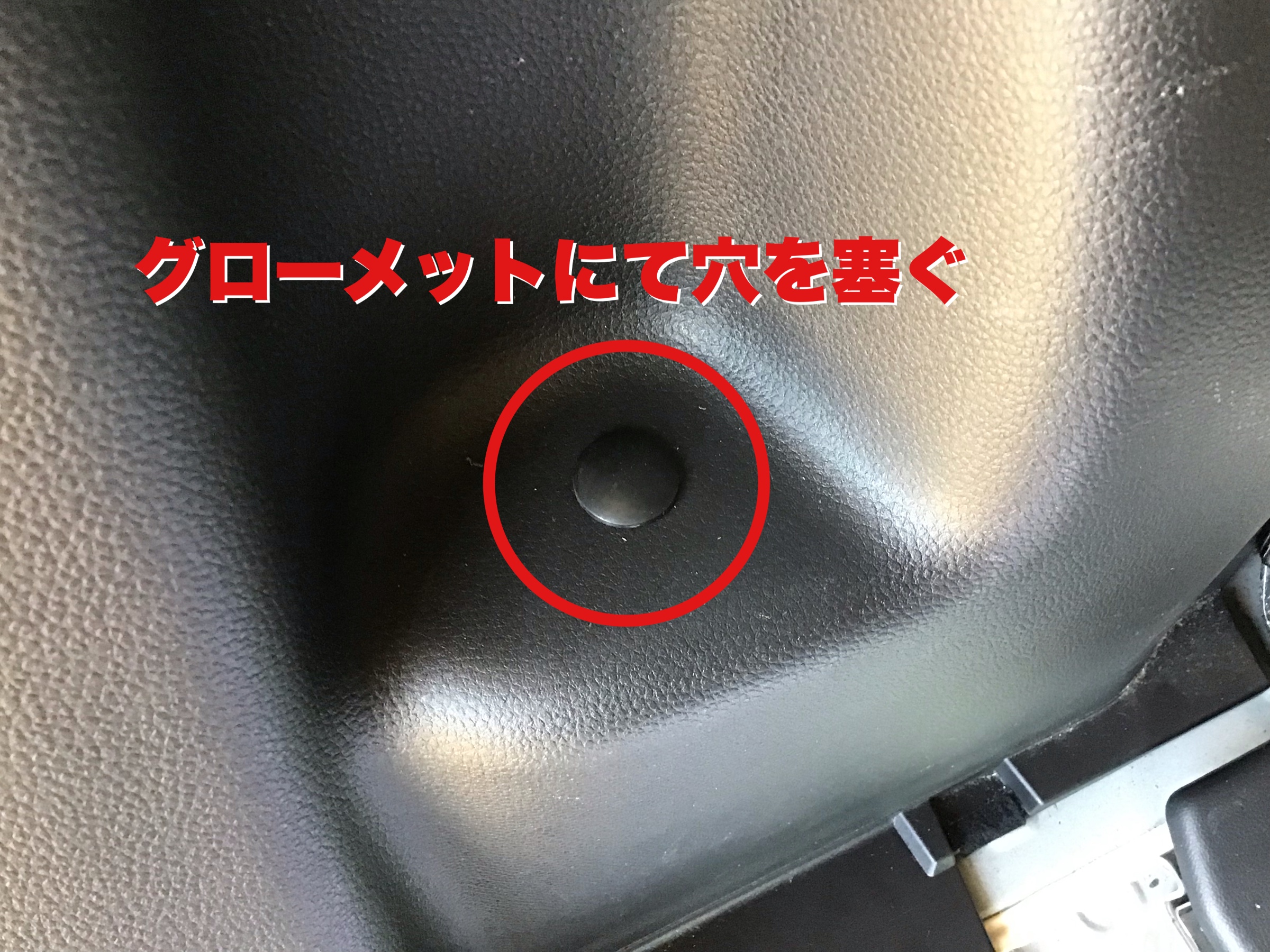 内装パネルの調整のための加工穴をグローメットにて塞ぎます。