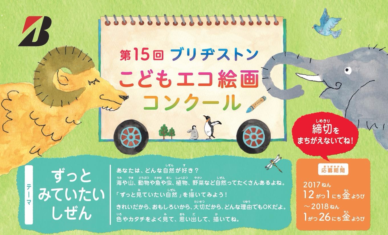 詳しくは、 第15回 ブリヂストンこどもエコ絵画コンクール