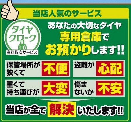 4:屋内の専用倉庫に保管しますのでタイヤが長持ち!!!!