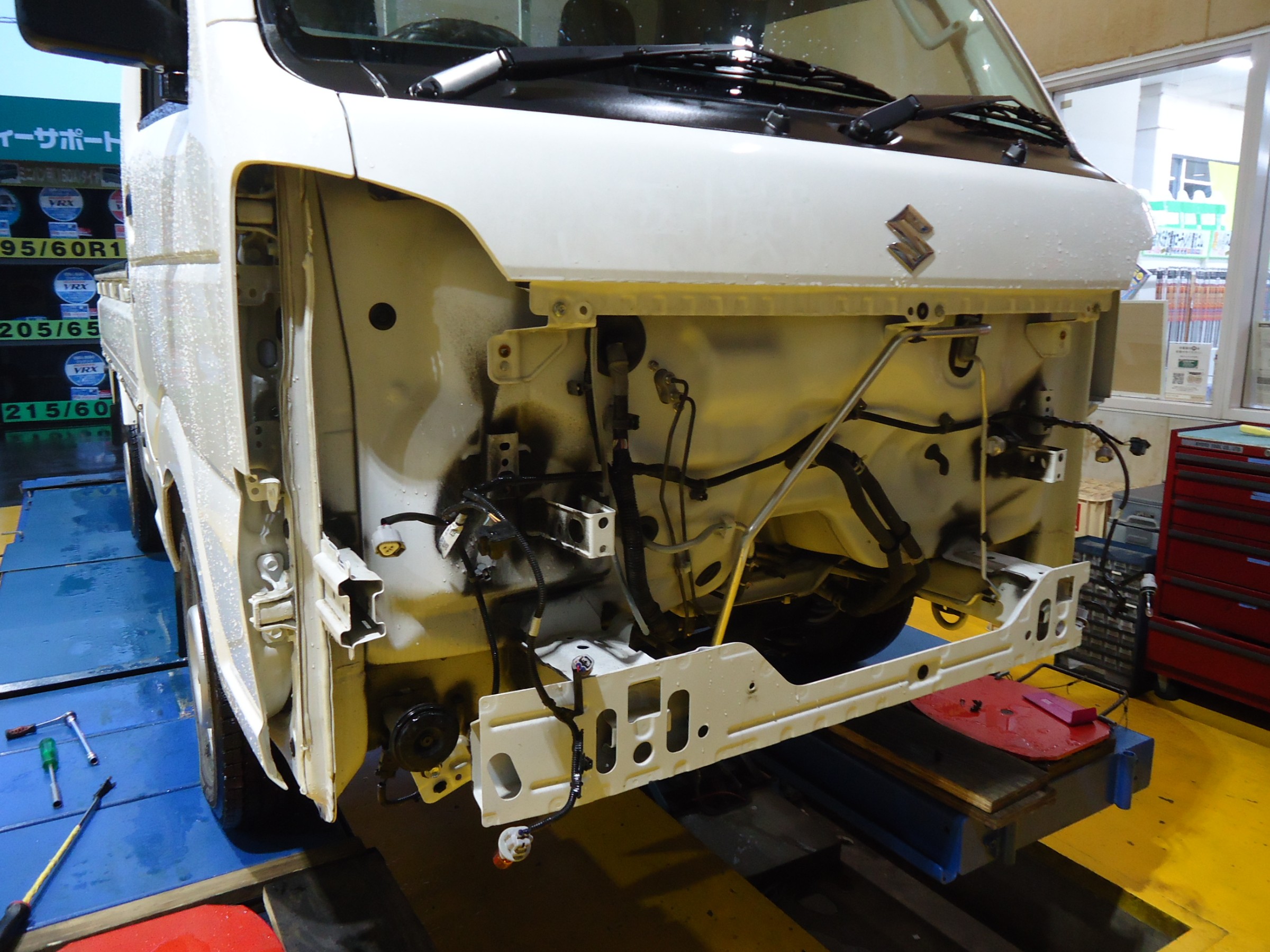キャリイのバルブ交換は・・・先ずバンパーを取り外し、ヘッドライトを外して