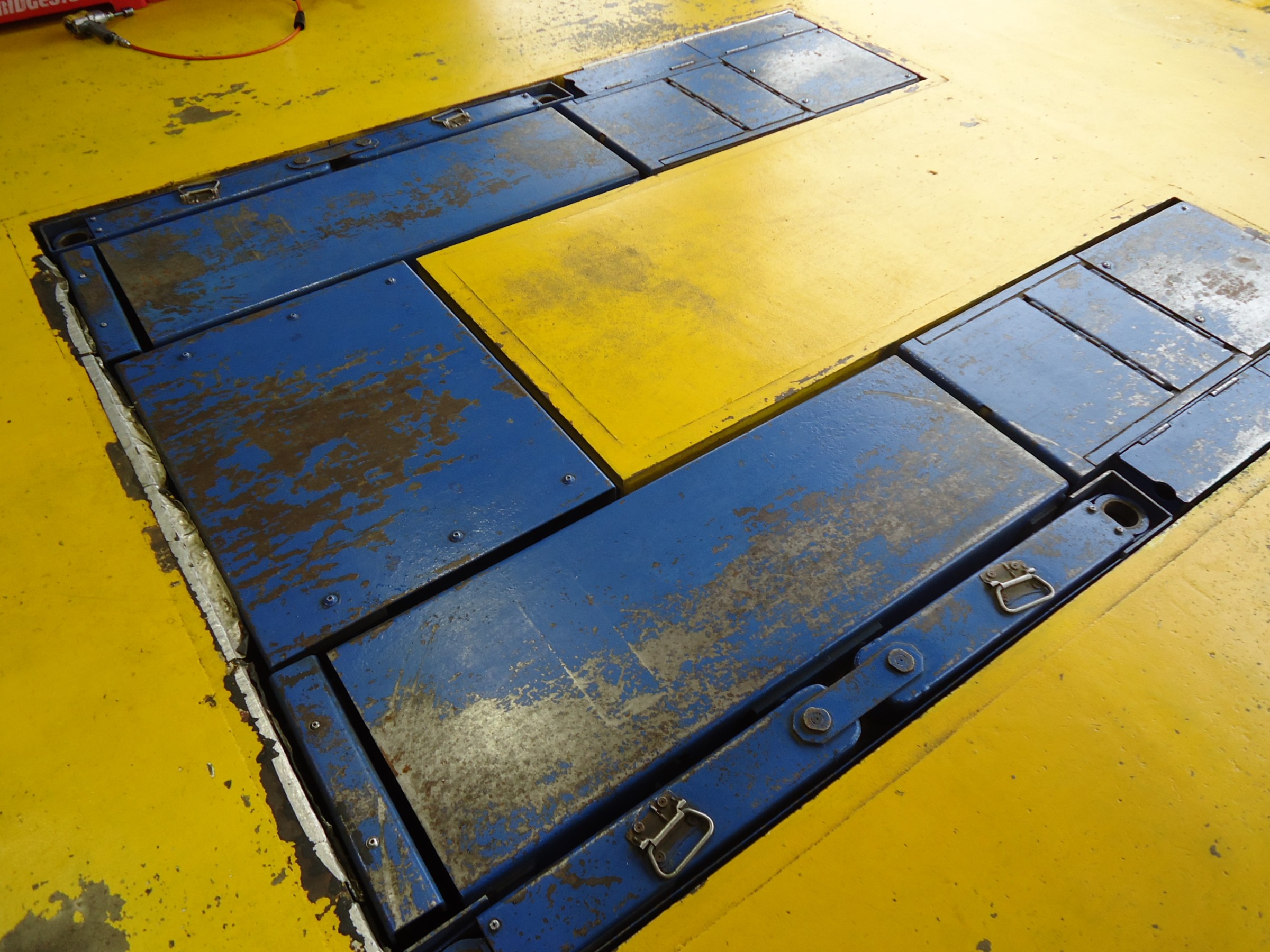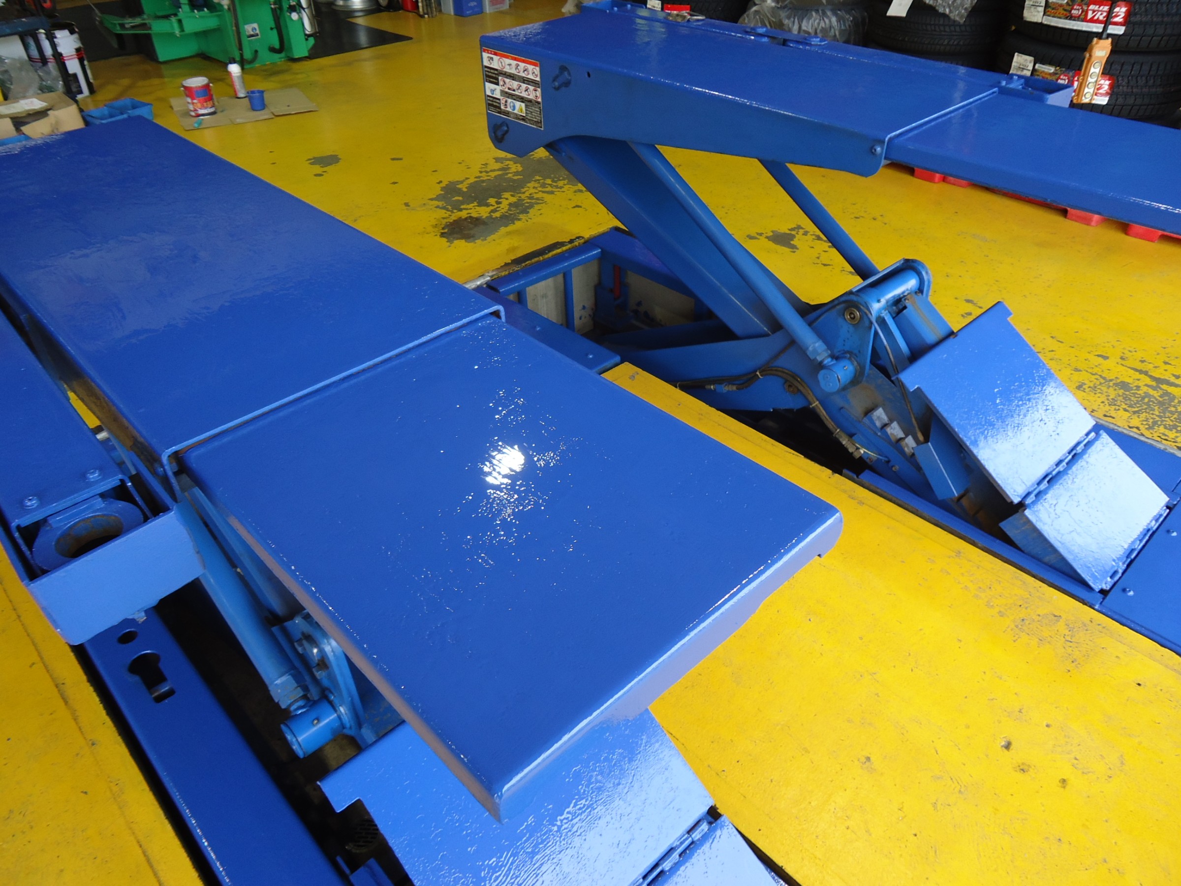 少しピットは寒いですが、頑張って塗装します~!見ちがえるほどきれいになったカーリフト、塗装が乾燥したらガッチリ働いてくださいな~ぁ