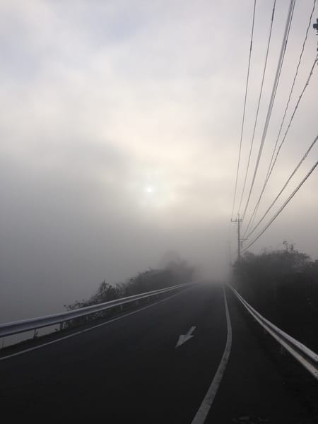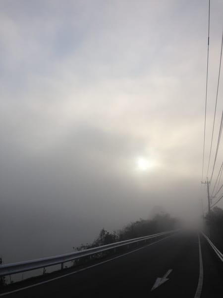 朝、通勤していたら、霧がものすごくひどかったので、画像に収めてみました。