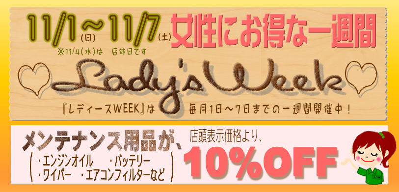女性の方、女性と一緒にご来店の方にお得な1週間です。
