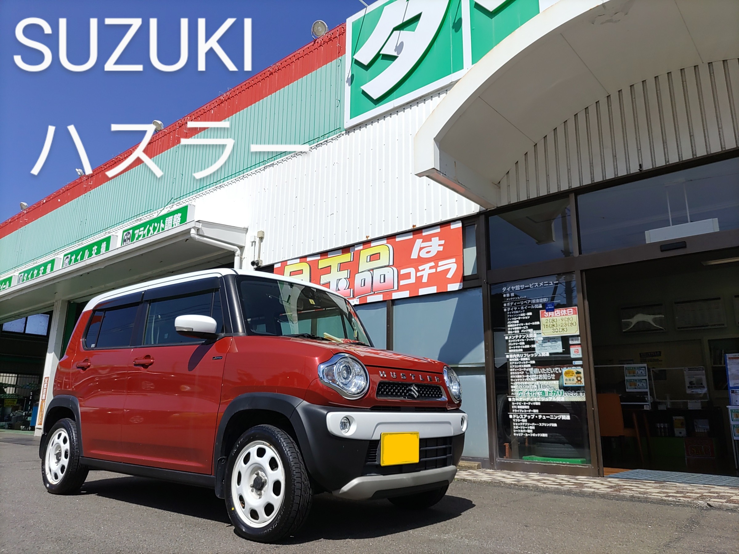 SUZUKI ハスラー タイヤ交換 ポスト 2022年3月27日 今回のご紹介は、スズキのハスラーの タイヤ交換♪ 可愛い車ですよね(^^)! タイヤサイズは165/60R15 装着タイヤは、 BRIDGESTONEのNEXTRY(ネクストリー)♪ エコベーシックタイヤです♪ 友人の妹さんのお車のタイヤ交換でした! わざわざ南島原より有難う御座いましたm(_ _)m 担当:田中