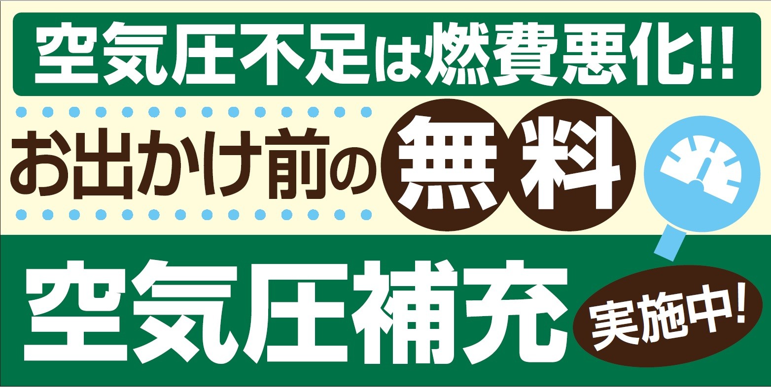 お出かけ前の空気圧補充やお車の点検はタイヤ館にお任せ下さい!