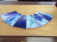 ステンドグラス教室へ行ってきました! 今回の作品は一枚のガラスから作りあげてますが、このガラスの柄がお気に入りすぎてる中角です。 ガラスをカットしてコパテープを貼り 今回はハンダの仮付けまで 完成まであともう少しです!