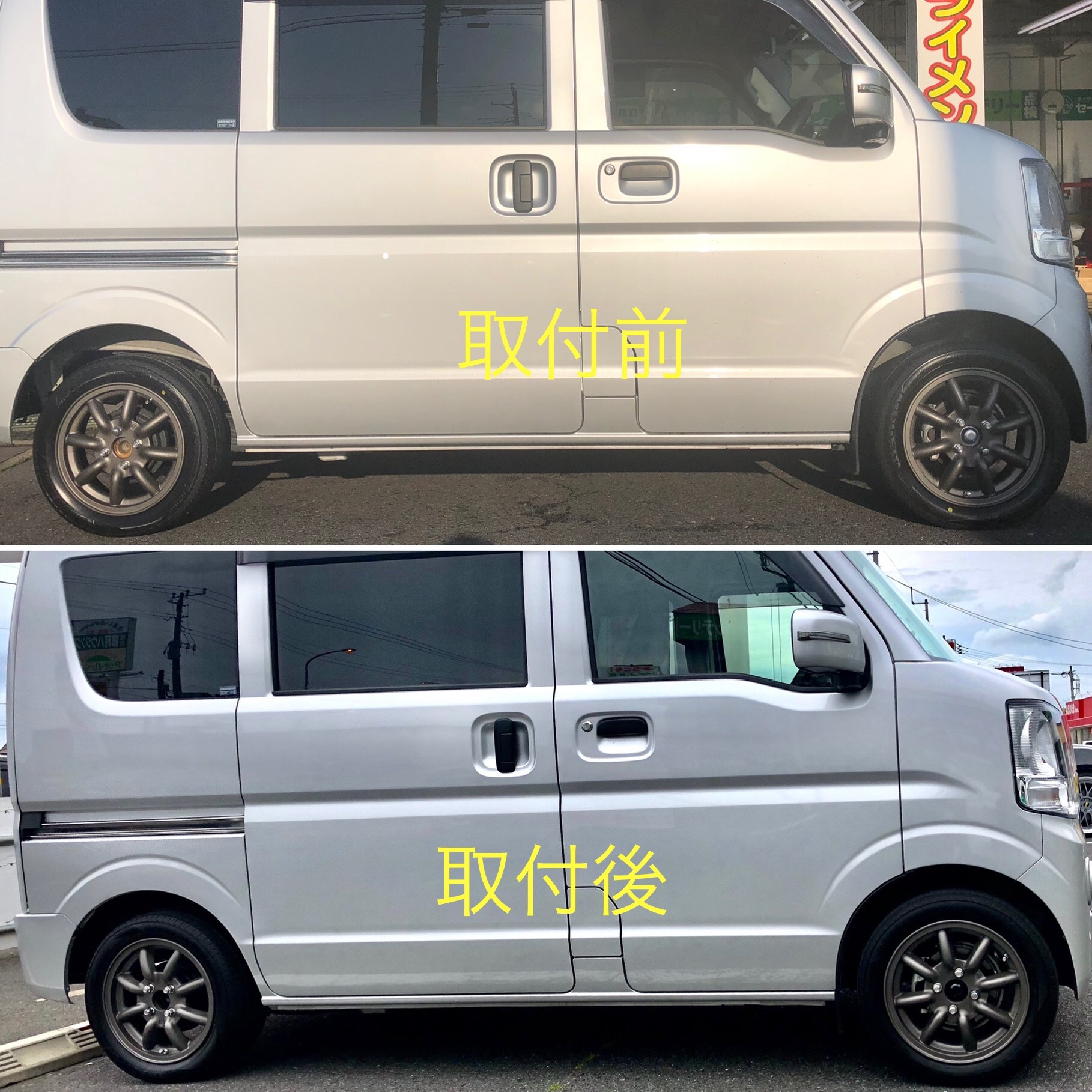 先日ワタナベのホイールを購入して頂いたエブリイに、ダウンサスを取付させて頂きました!