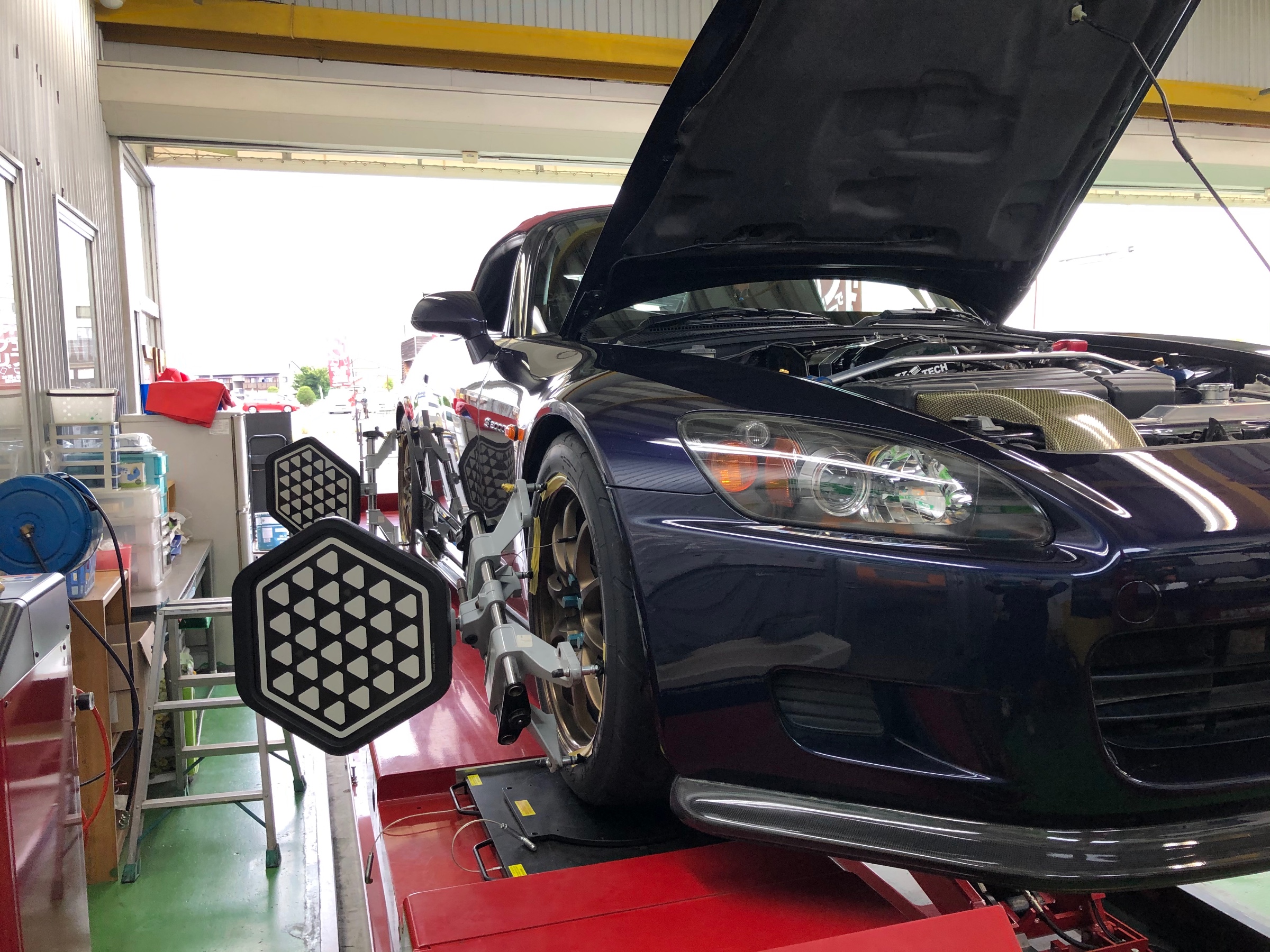 今回は業者様のご依頼でS2000のアライメントです。今回足廻り等を仕様変更と言うことでお預けかりしました。