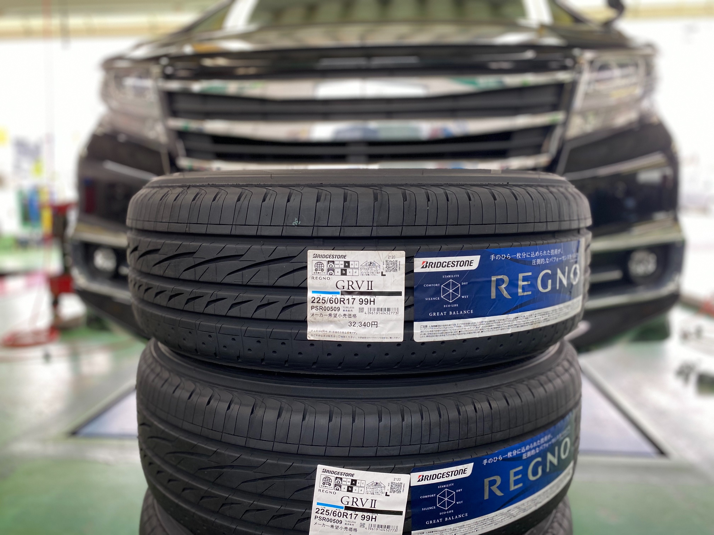 アルファードハイブリッドに乗られているので、もちろん静粛性、乗り心地に定評が有ります。レグノのGRVⅡを御購入頂きました。