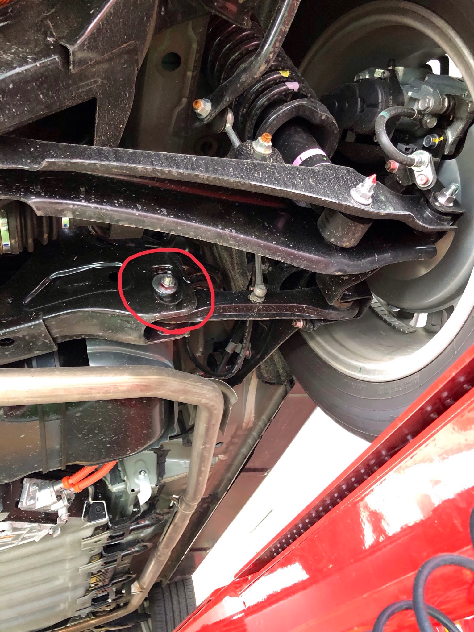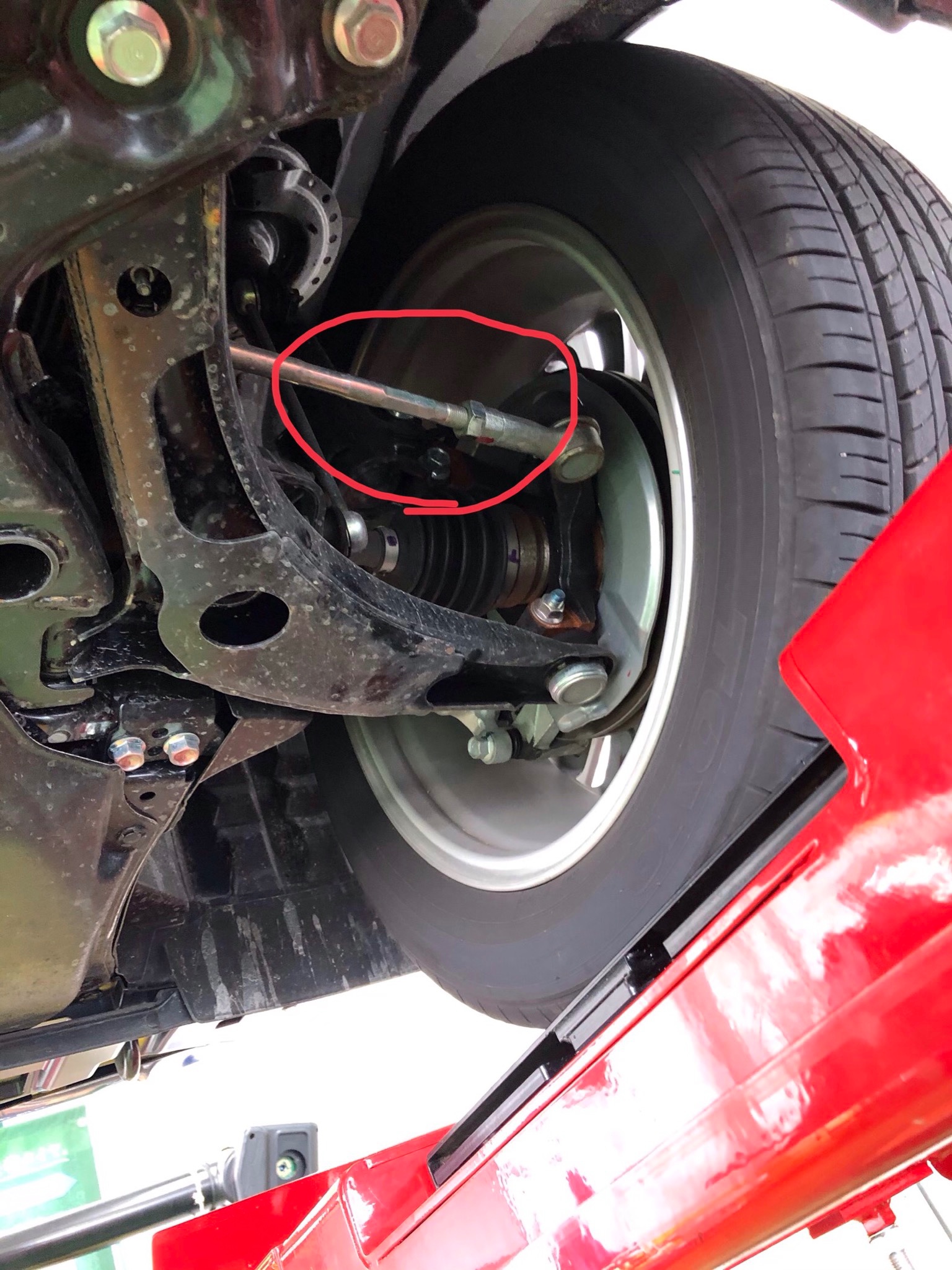 赤い枠の場所でトウの調整ができます。キャンバーの場合にはストラット側での微調整になります。
