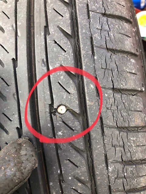 お話しを伺い、現地でスペアタイヤに交換し、来店頂くことになりました。