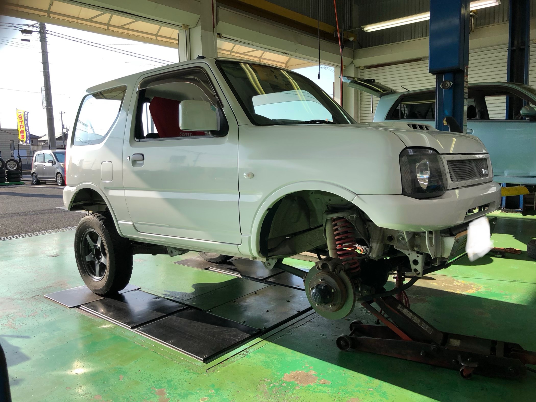リフトアップもしてあるので白ボディに白ホイールがかなりかっこいいですね。取り付けまで数ヶ月待って頂きましてありがとうございます。