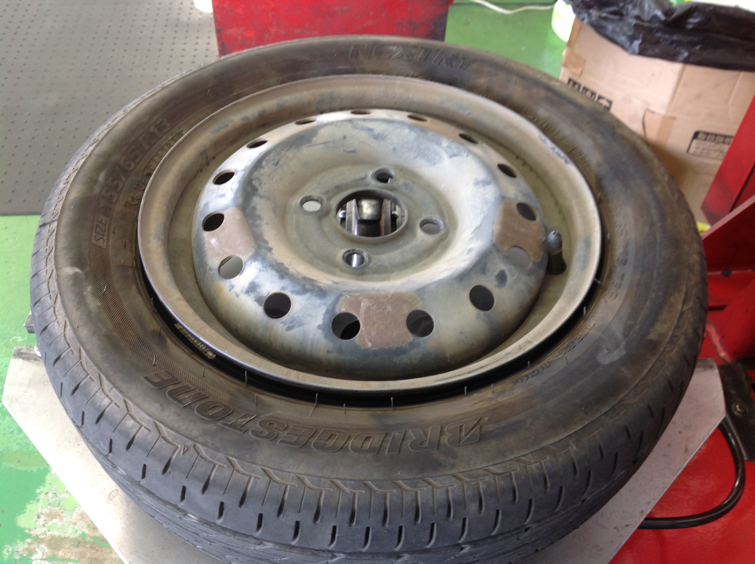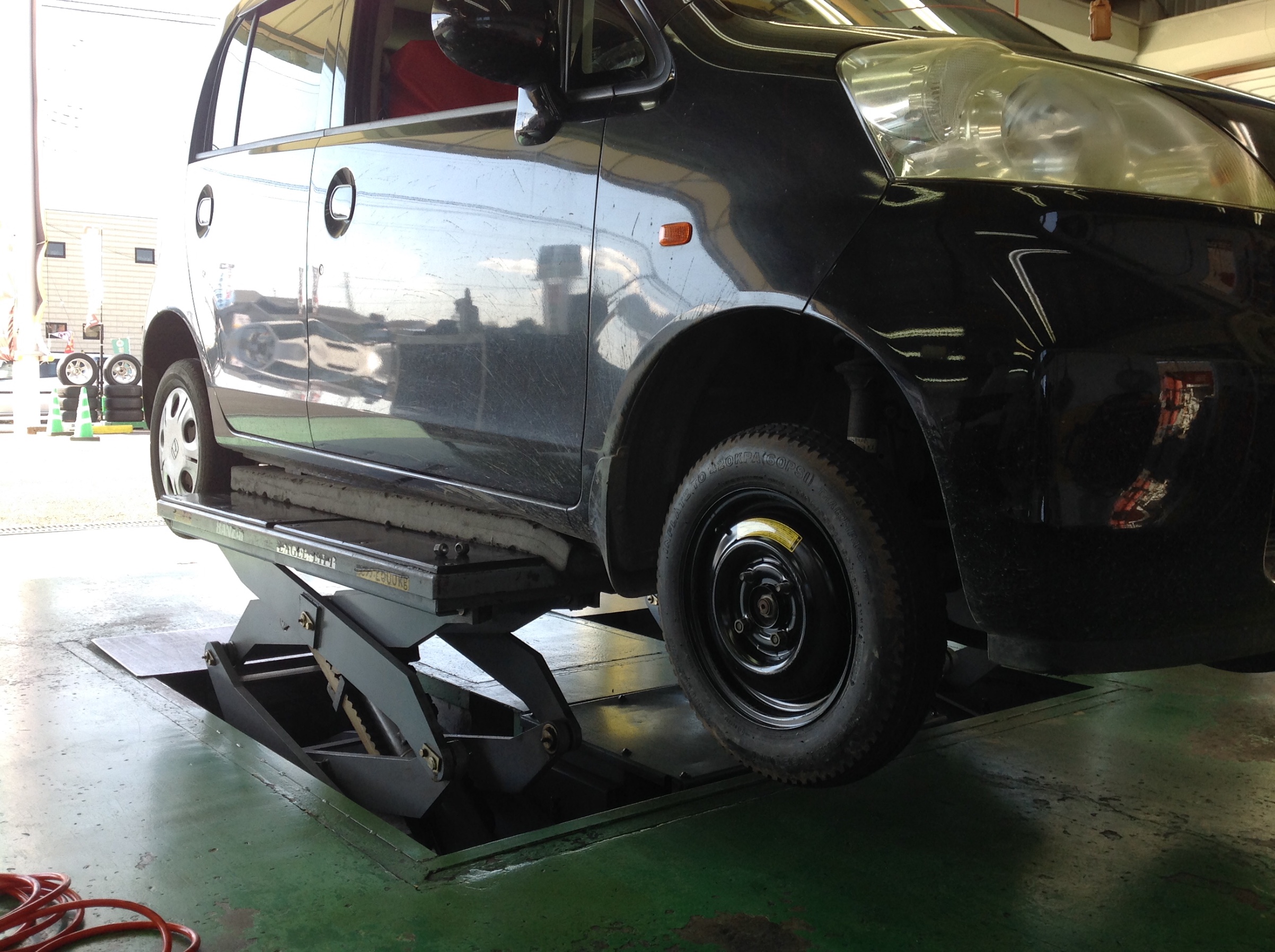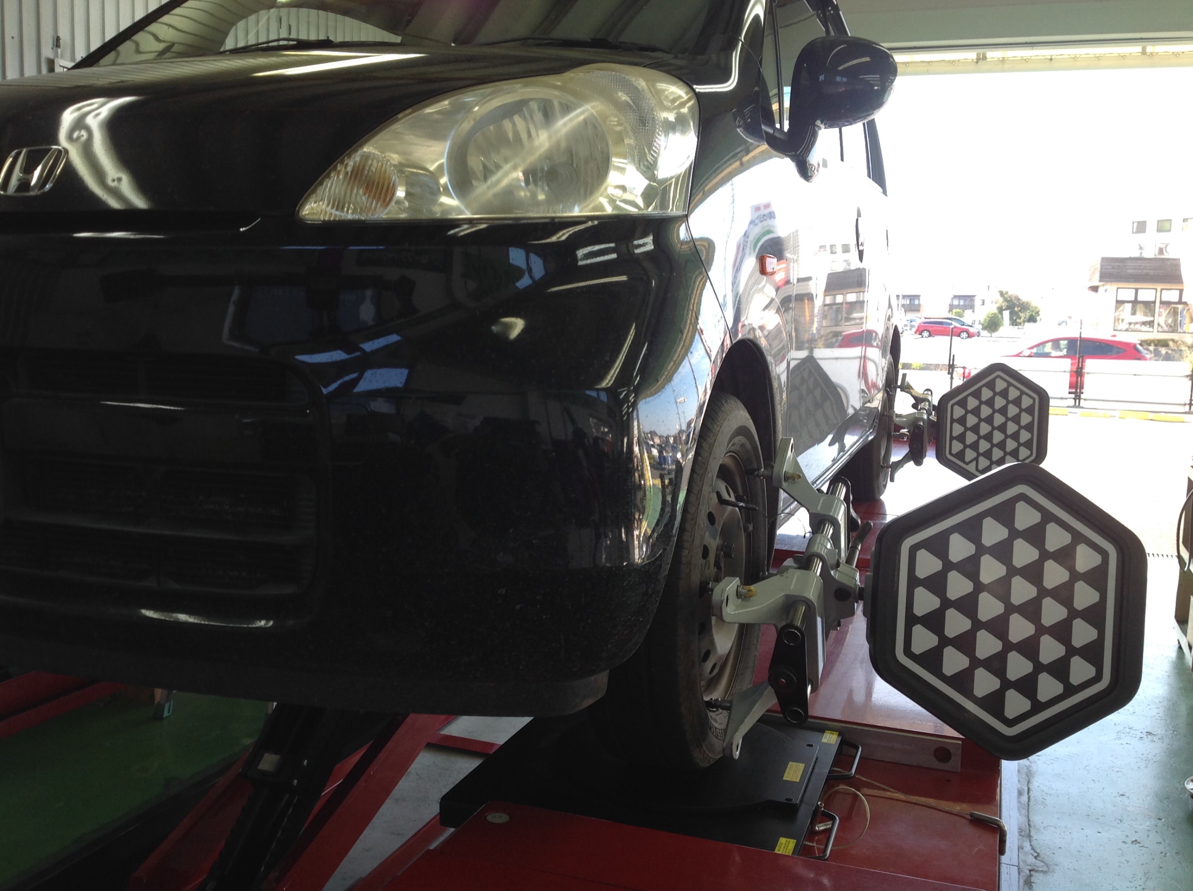 パンクでご来店頂きました。縁石に乗り上げたとのことでしたのでアライメントをご提案させていただきました。