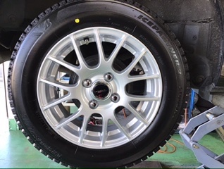 フィットの冬タイヤホイールセット、バッテリー、オイル交換をさせて頂きました。