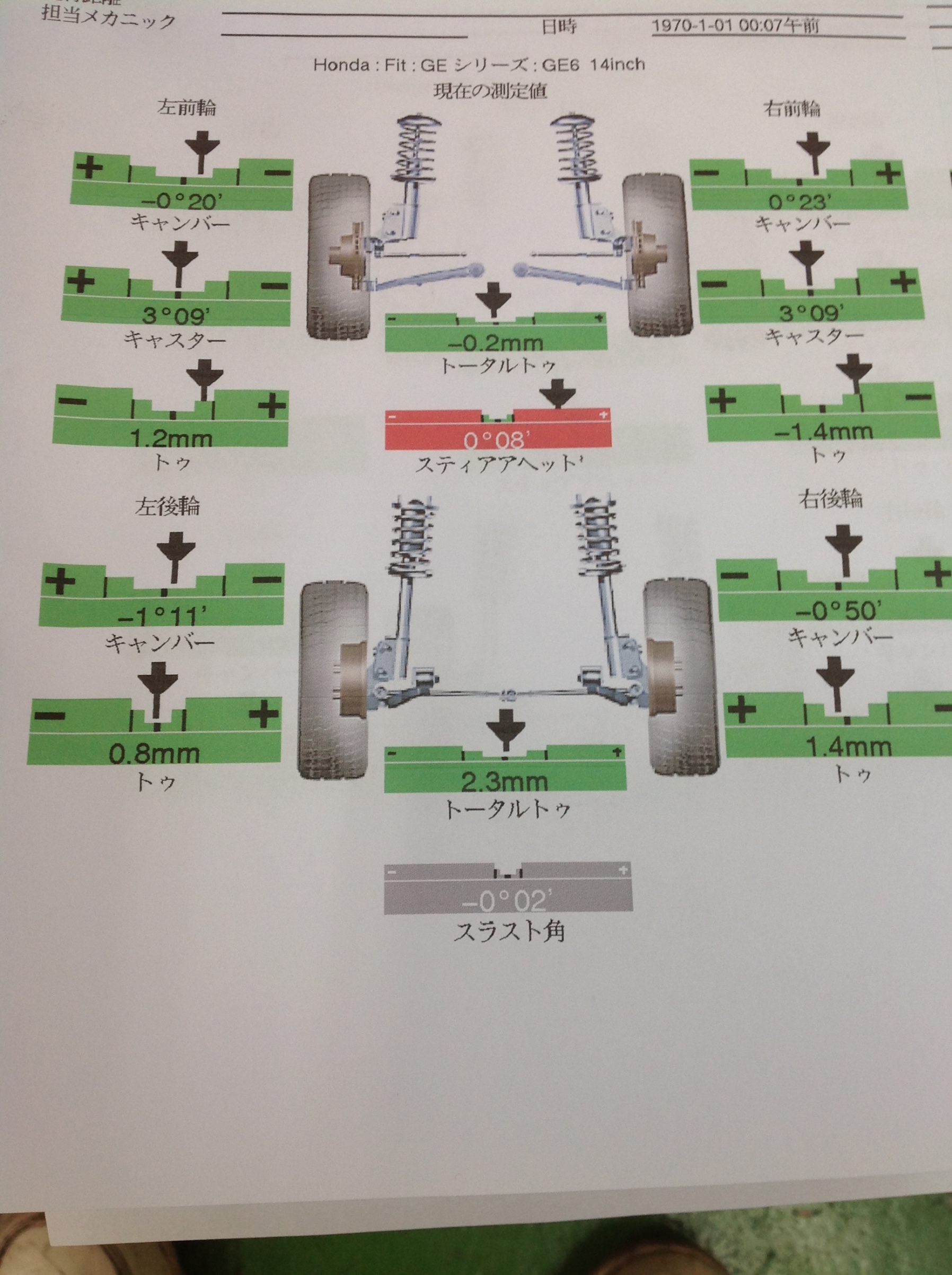 今回履き替えでご来店いただきました車両は以前に長持ちプランにご加入いただいていまして、今回履き替えと同時にアライメントも測定させていただきました。