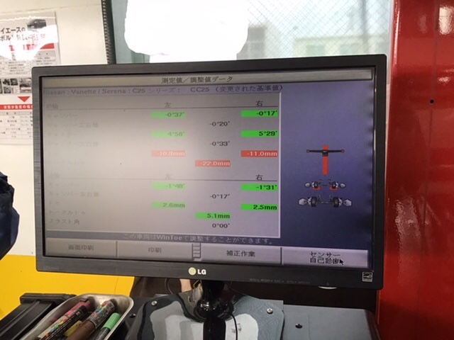 セレナ タイヤ交換 アライメント