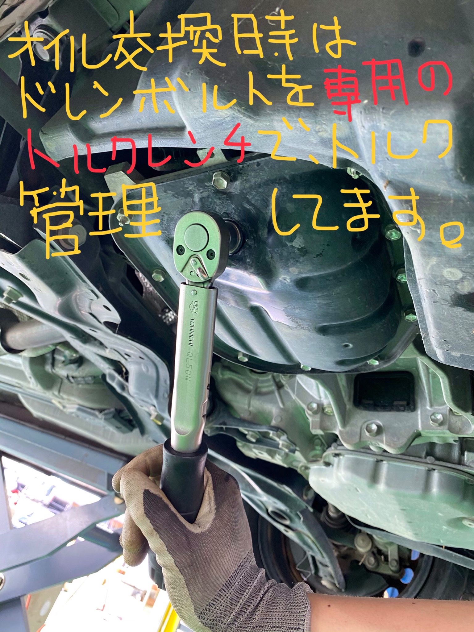 又、今は何処のショップさんでもそうだと思いますが、オイルパンのドレンボルトの締め付けには専用のトルクレンチでカーメーカーさんの規定トルクに沿って管理させていただいております♪( ´▽`)