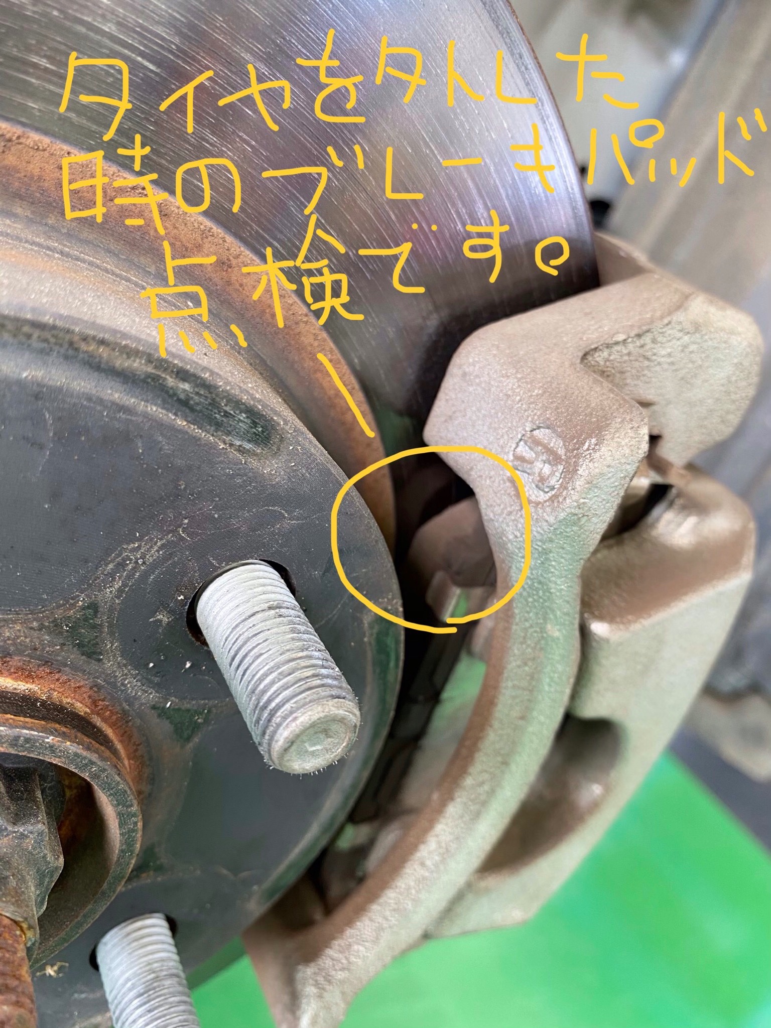 オプション点検になりますが、タイヤ交換の際には、ブレーキパッドの点検も致します。