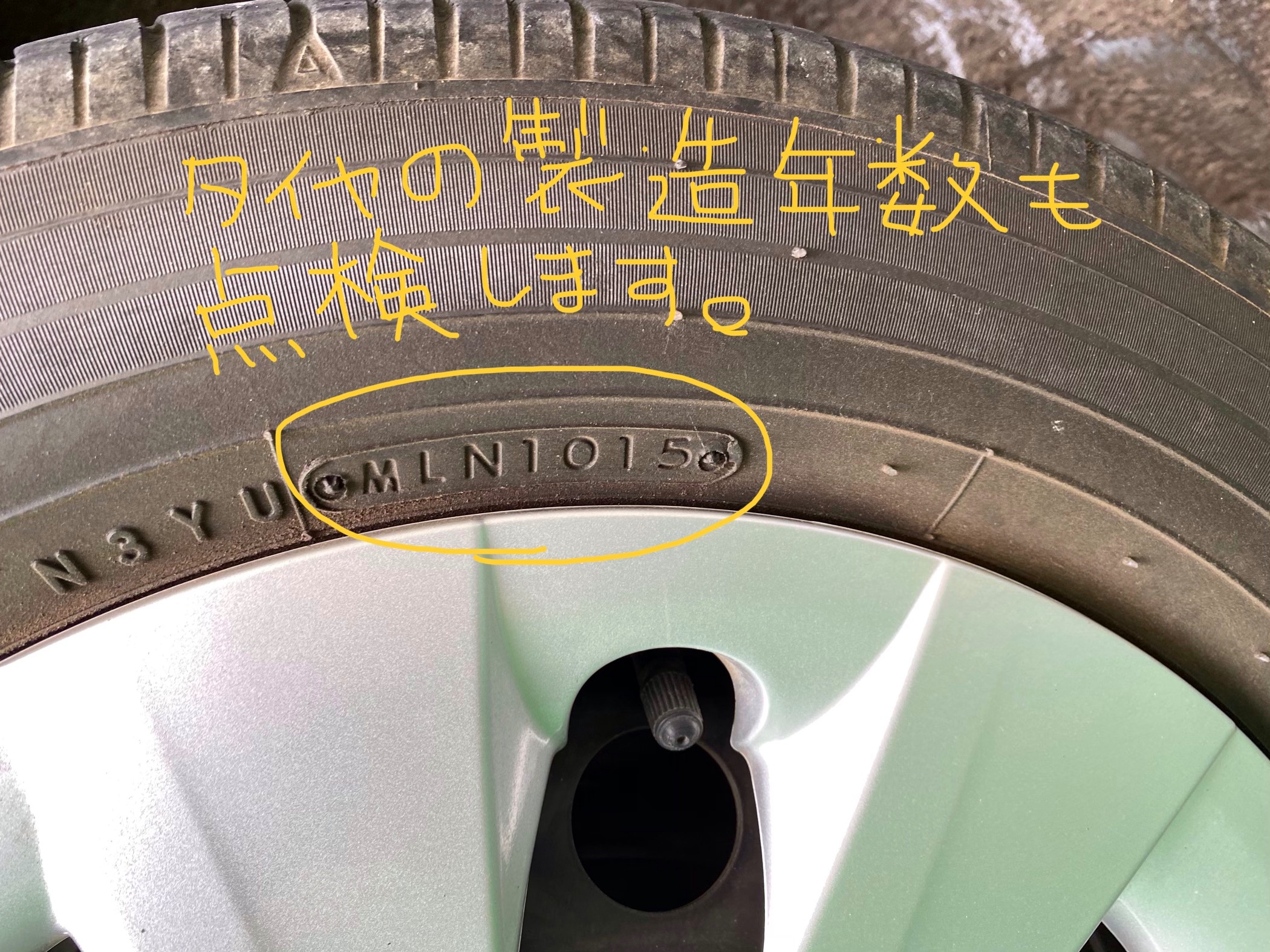 お使い頂いてるタイヤの製造年数も点検させていただいております。