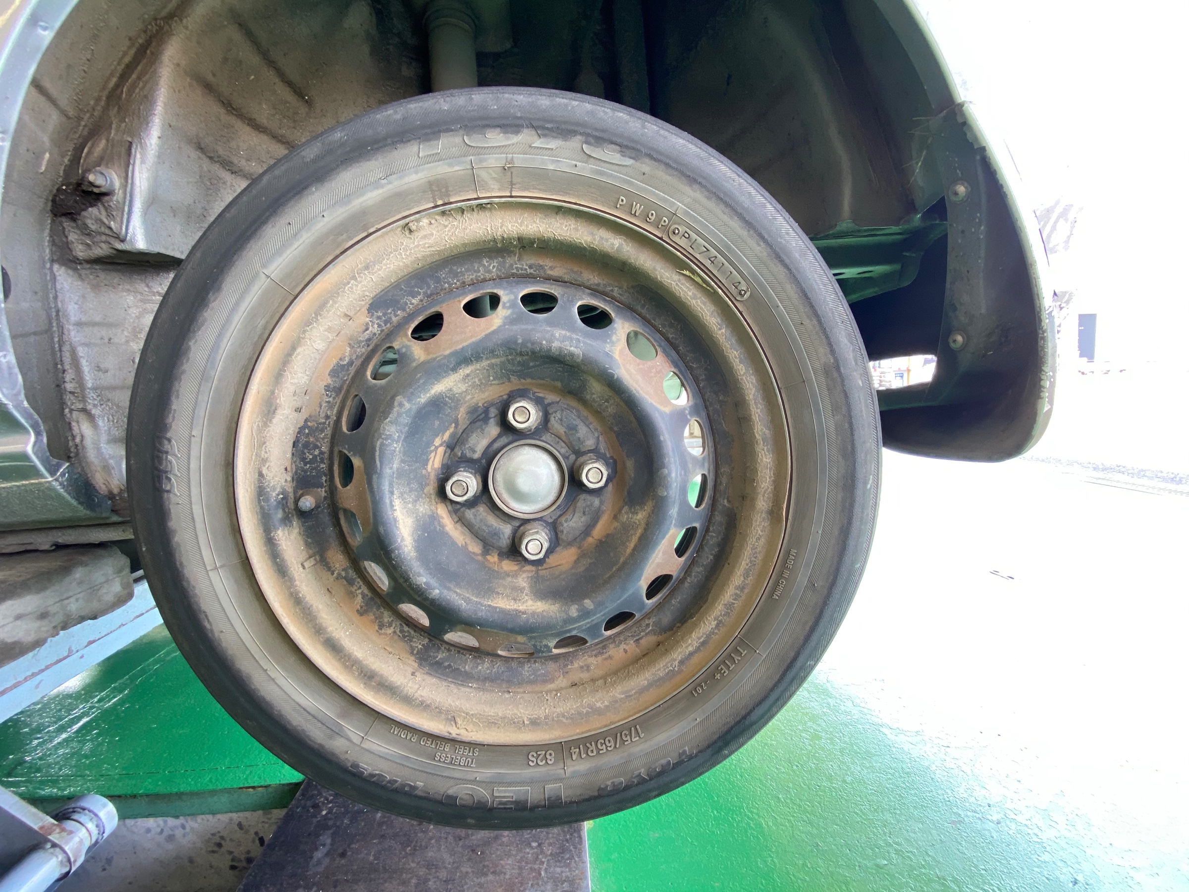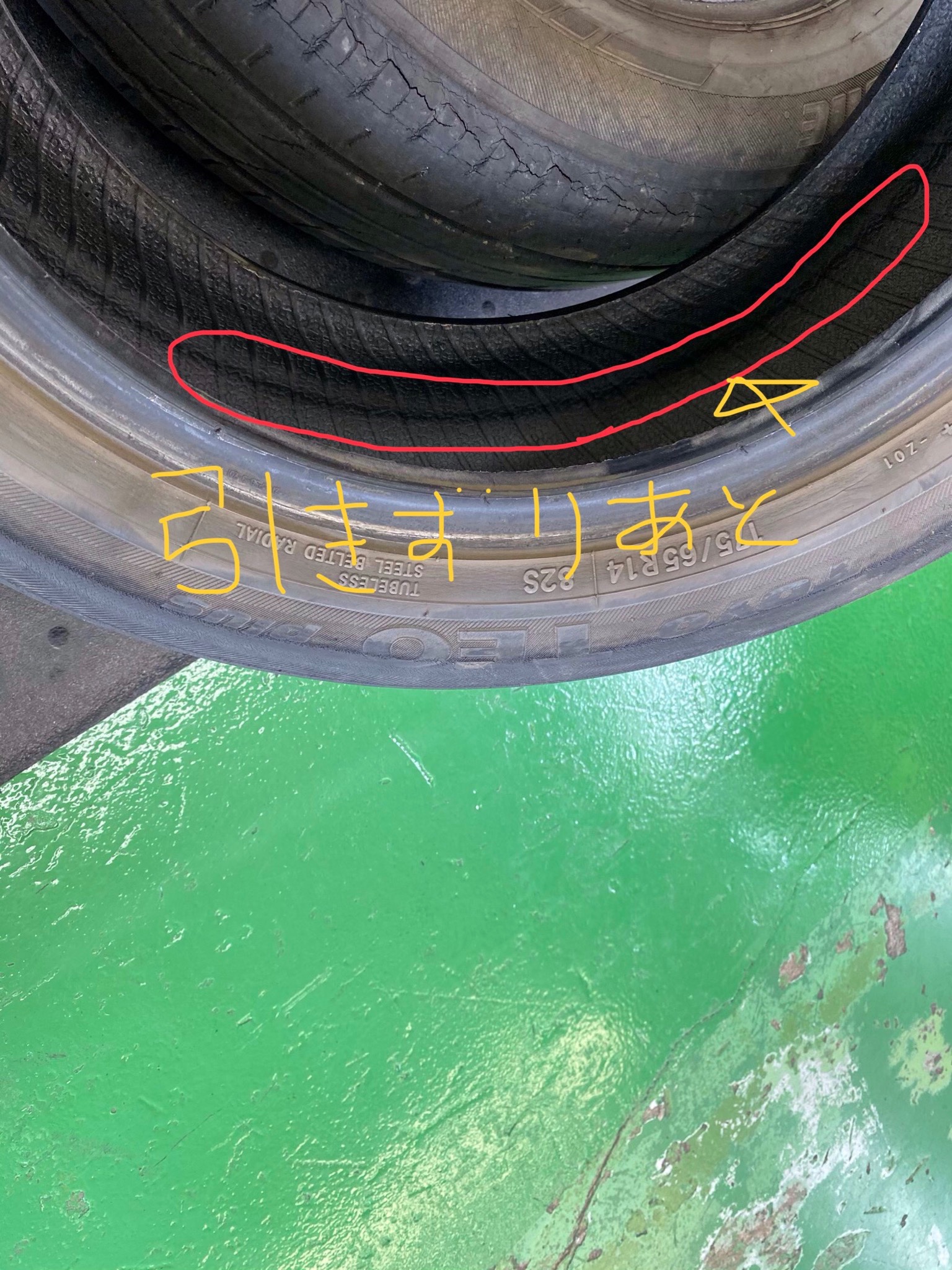 タイヤの中も引きずり痕があったのと、タイヤの残溝が無く、ひび割れも酷かったので、