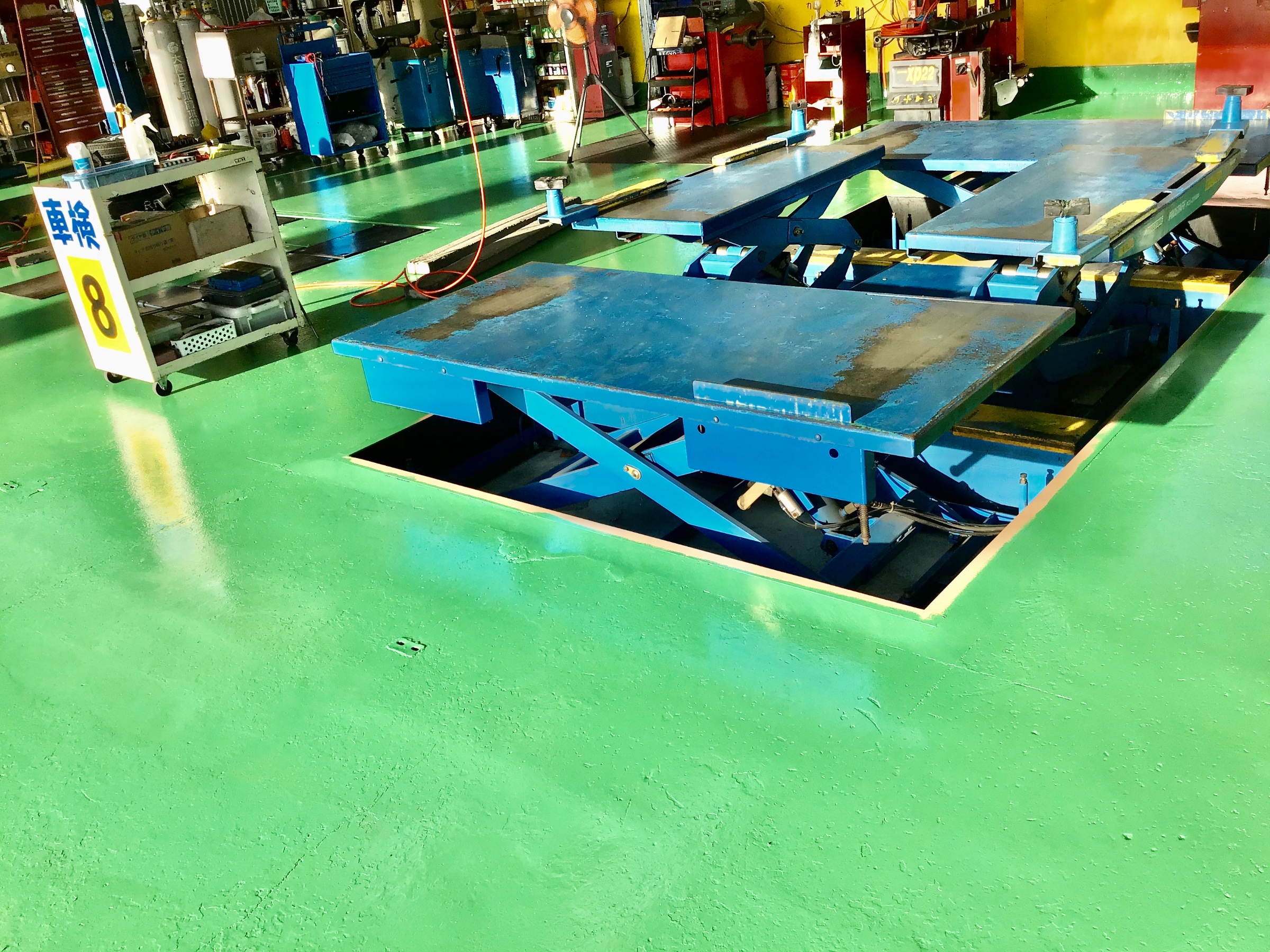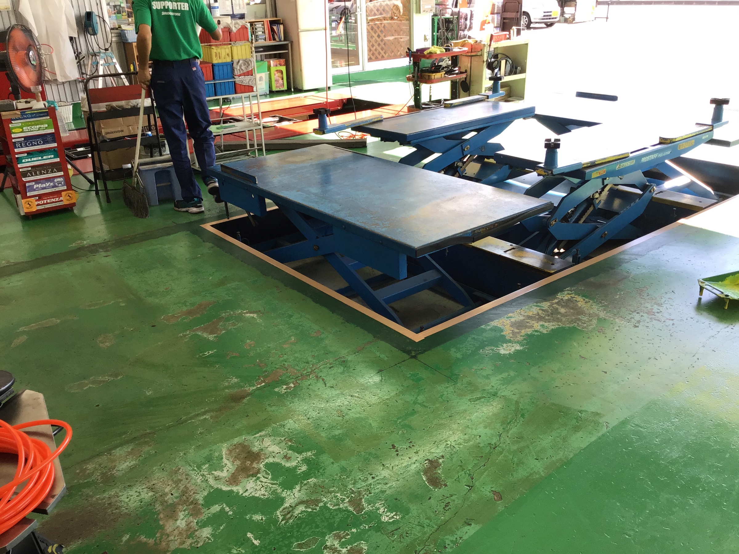今回はですね、なんと当店タイヤ館那珂のPITの床ですね