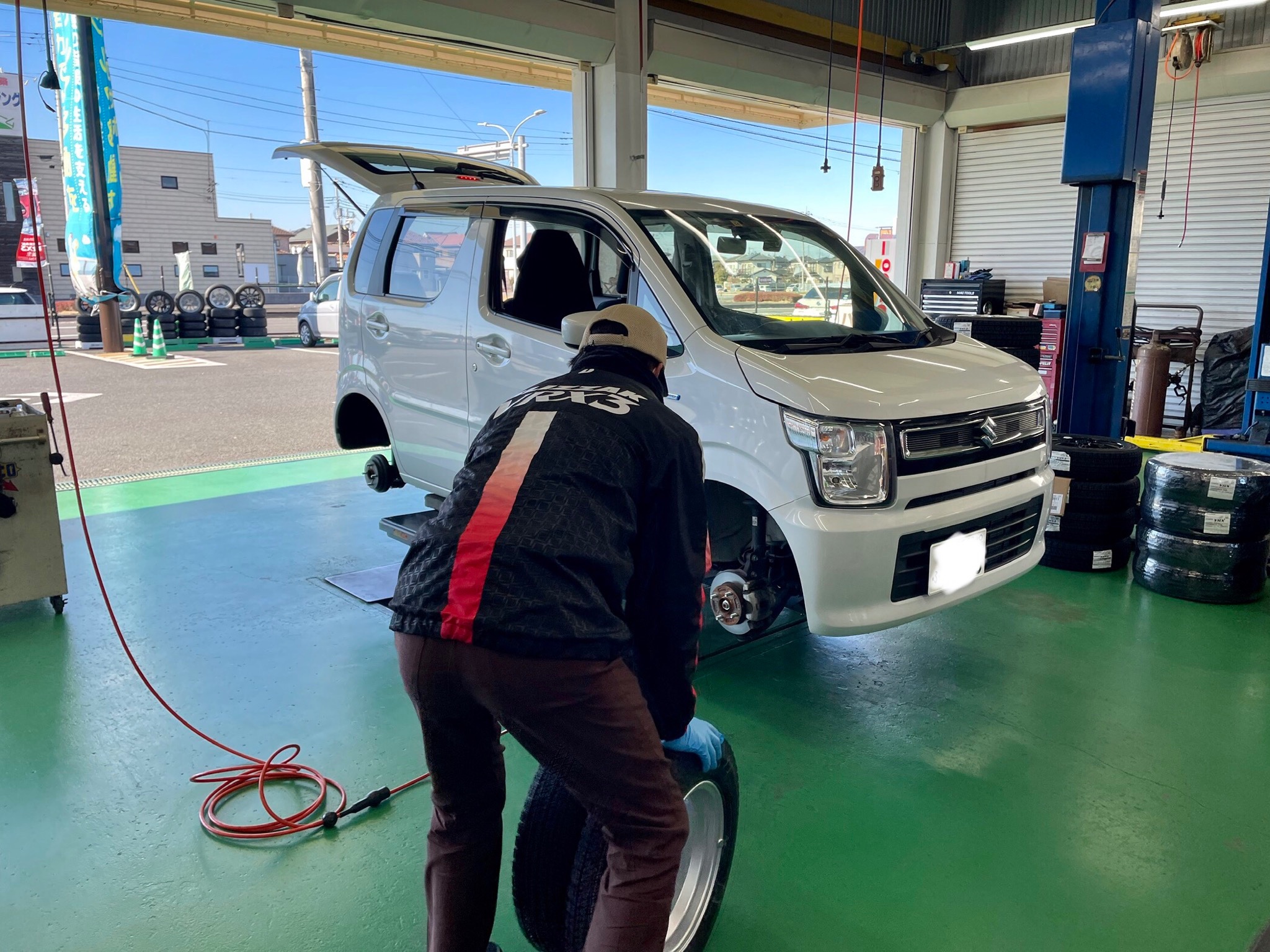 ワゴンRにスタッドレスタイヤを取り付けしました。