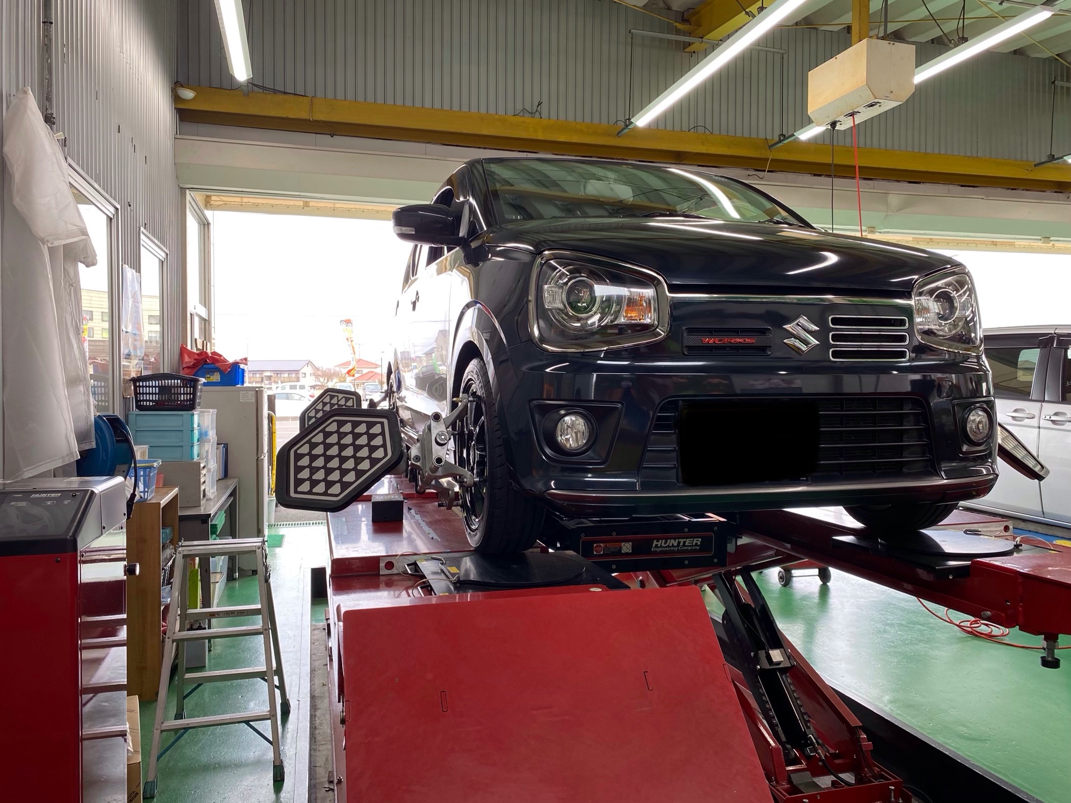 当店でタイヤ交換をしていただいてます、お客様の中でもアライメント測定を、